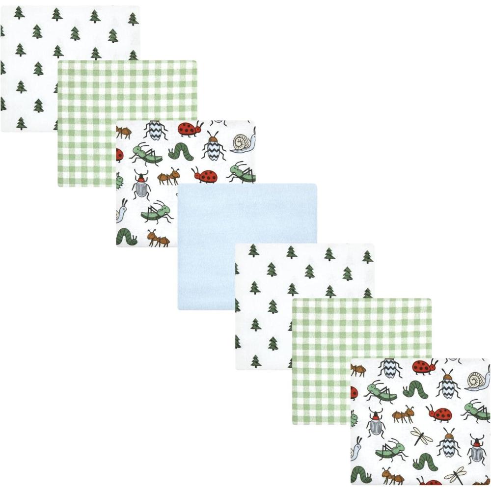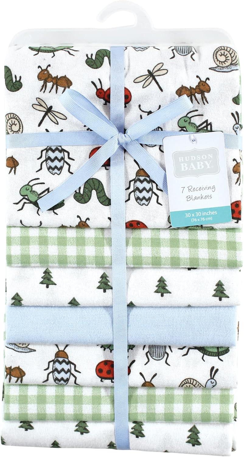 Hudson Baby Unisex Baby Cotton Flannel Receiving Blankets Bundle, Mustache Hat, One Size(Bugs)