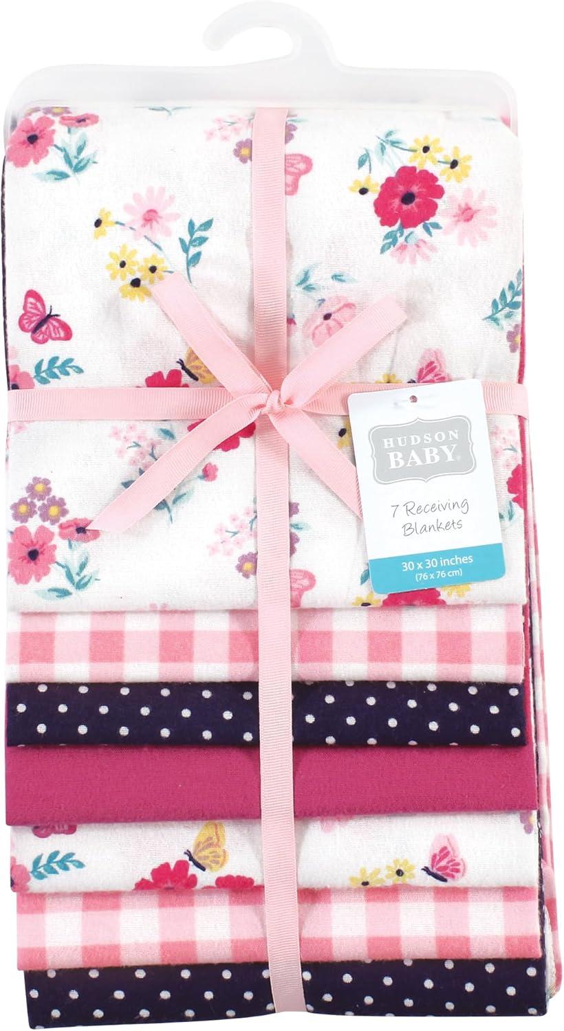 Hudson Baby Unisex Baby Cotton Flannel Receiving Blankets Bundle, Mustache Hat, One Size(Butterfly Floral)