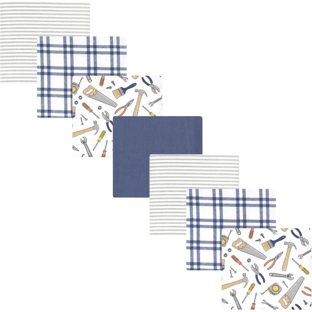 Hudson Baby Unisex Baby Cotton Flannel Receiving Blankets Bundle, Mustache Hat, One Size(Construction Work)