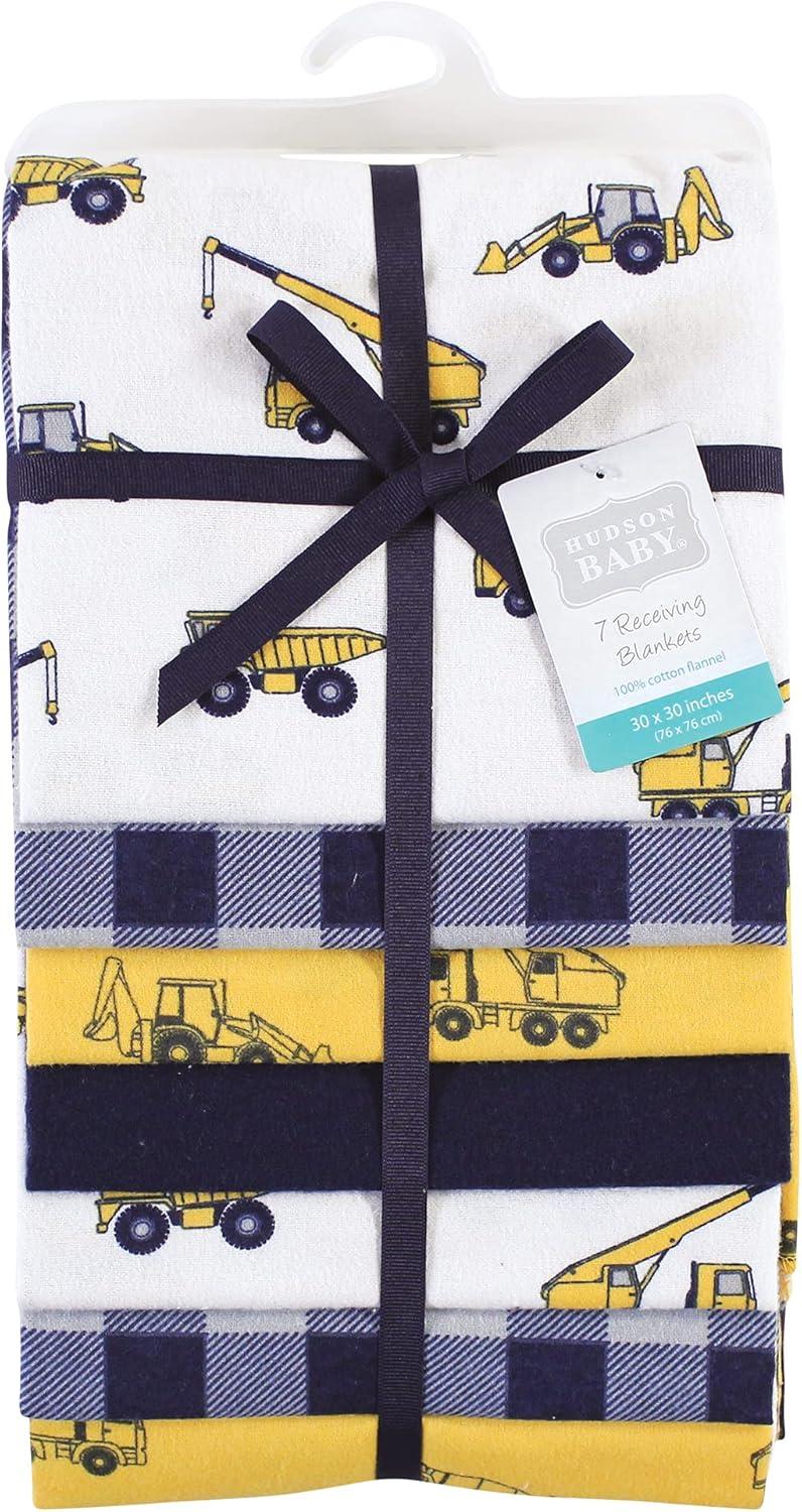 Hudson Baby Unisex Baby Cotton Flannel Receiving Blankets Bundle, Mustache Hat, One Size(Construction Work)