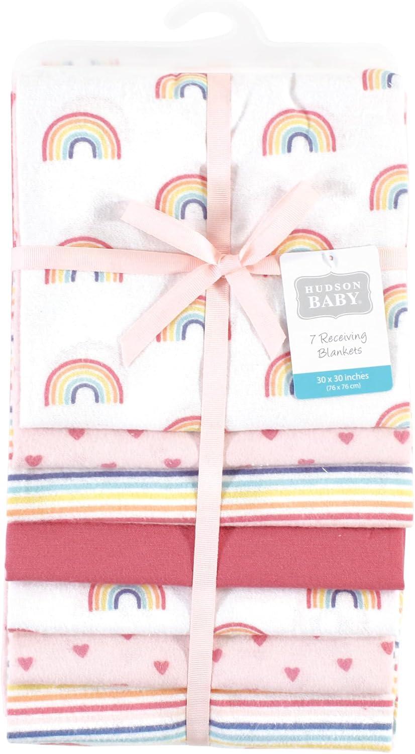 Hudson Baby Unisex Baby Cotton Flannel Receiving Blankets Bundle, Mustache Hat, One Size(Creative Rainbow)