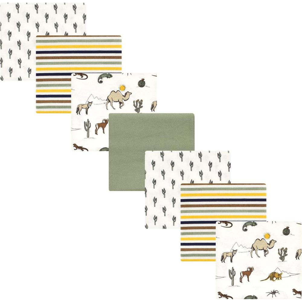 Hudson Baby Unisex Baby Cotton Flannel Receiving Blankets Bundle, Mustache Hat, One Size(Desert Animals)