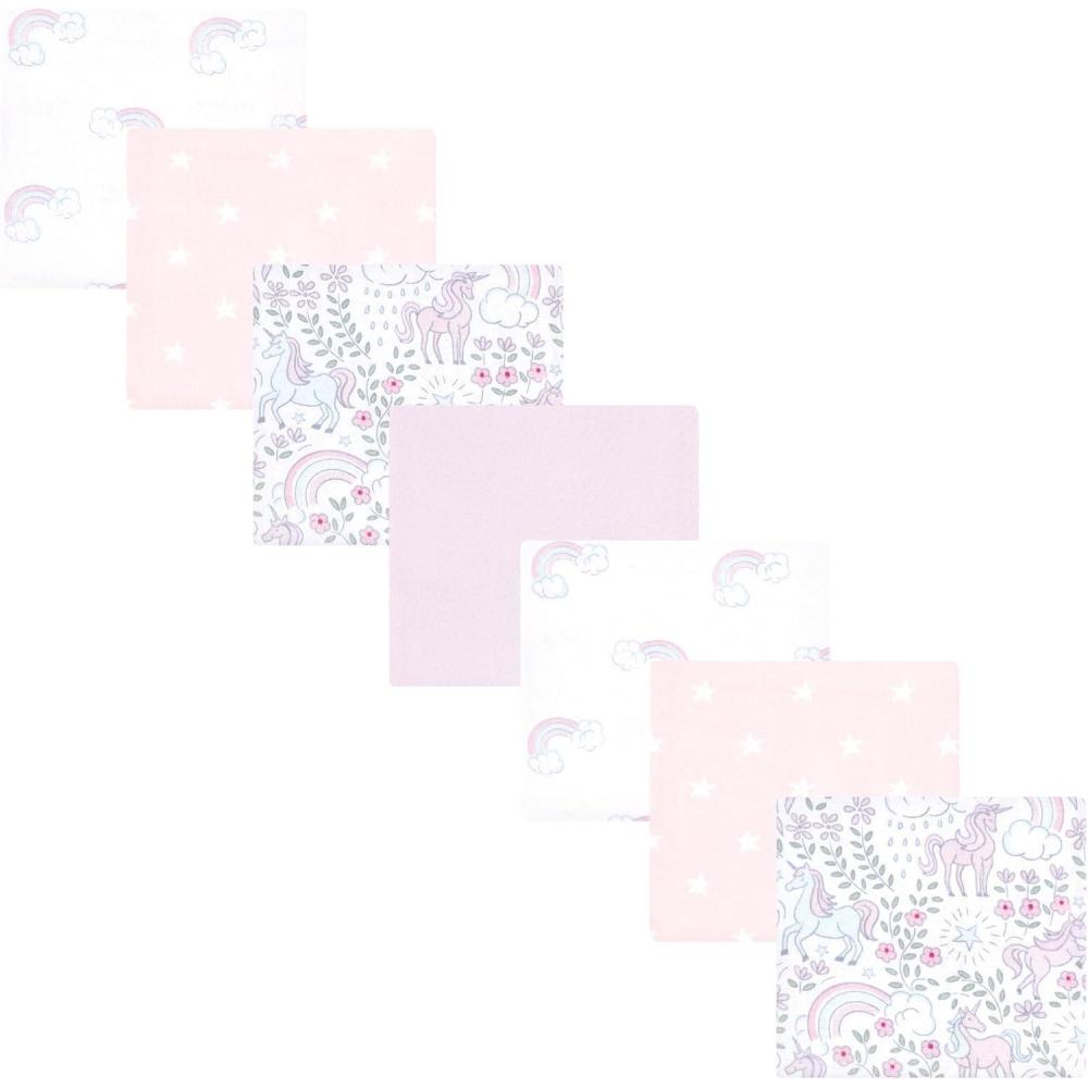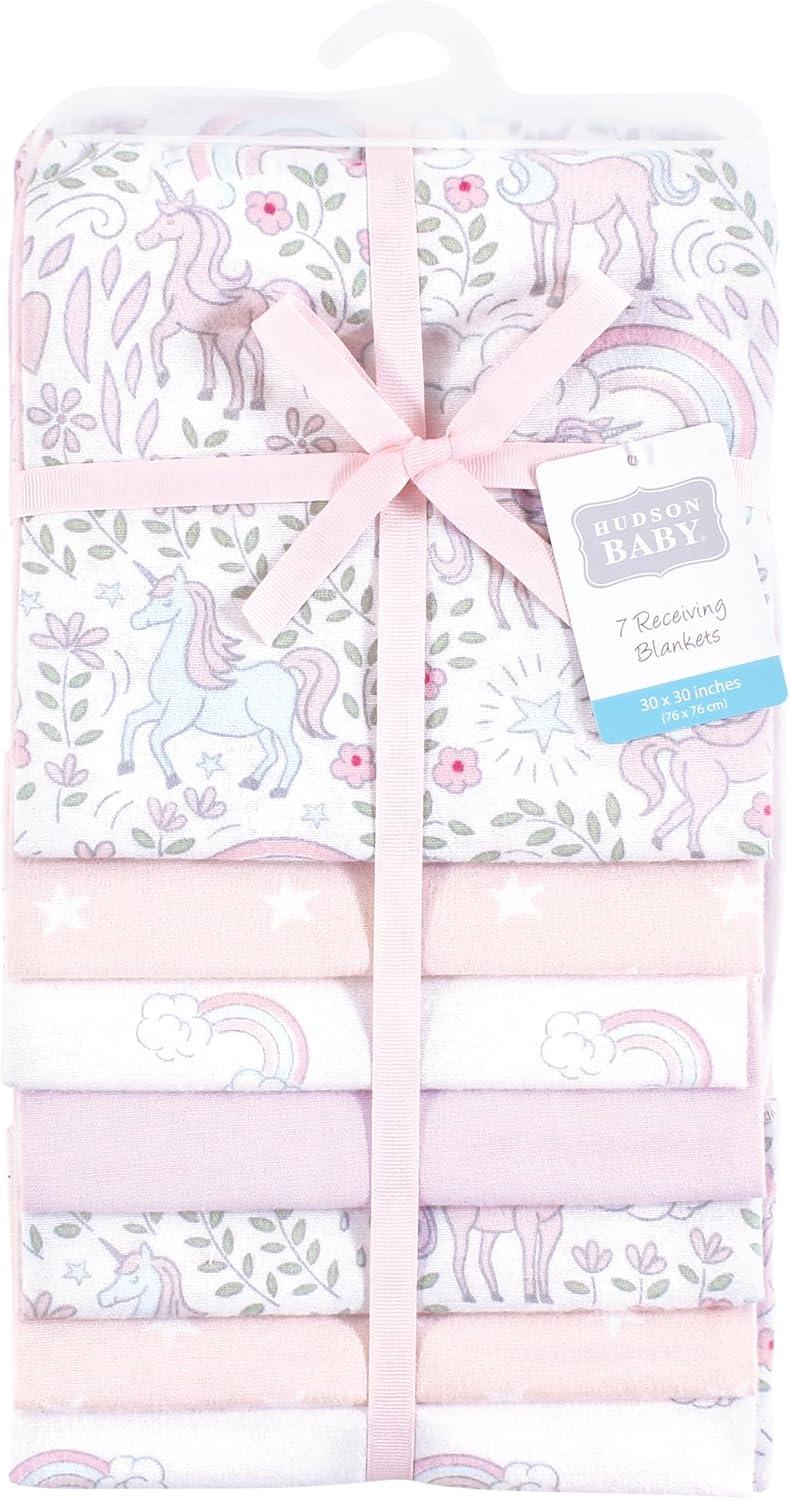 Hudson Baby Unisex Baby Cotton Flannel Receiving Blankets Bundle, Mustache Hat, One Size(Dreamy Unicorn)