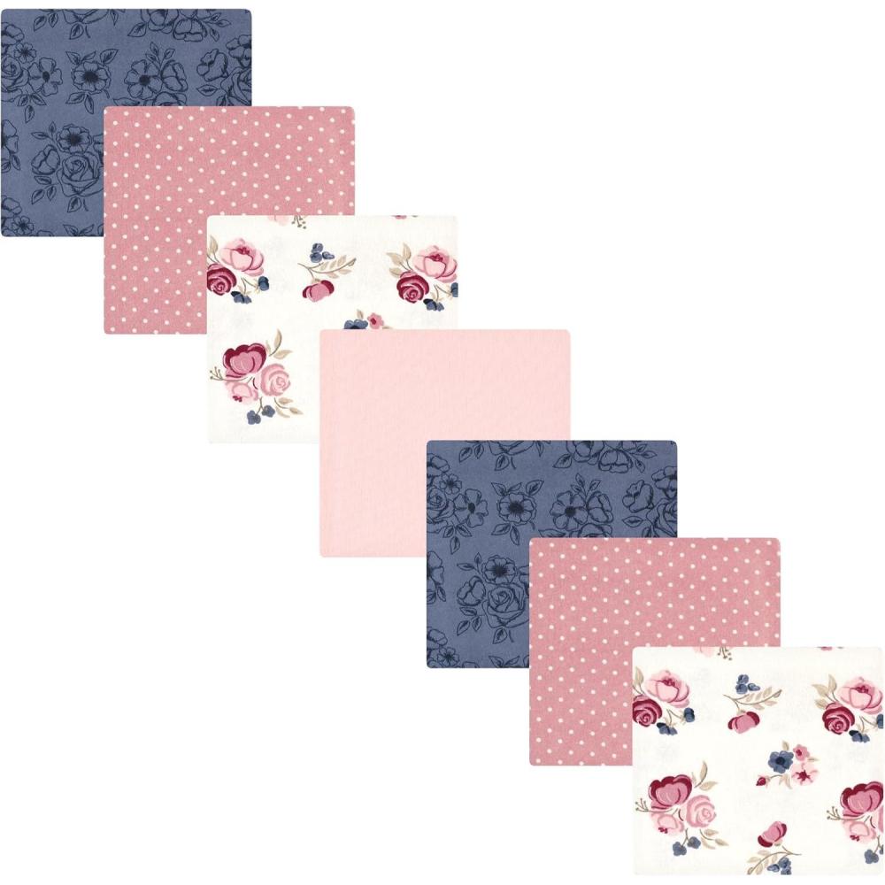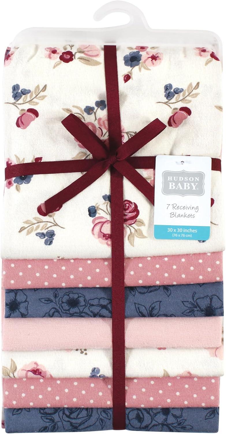 Hudson Baby Unisex Baby Cotton Flannel Receiving Blankets Bundle, Mustache Hat, One Size(Dusty Rose Floral)