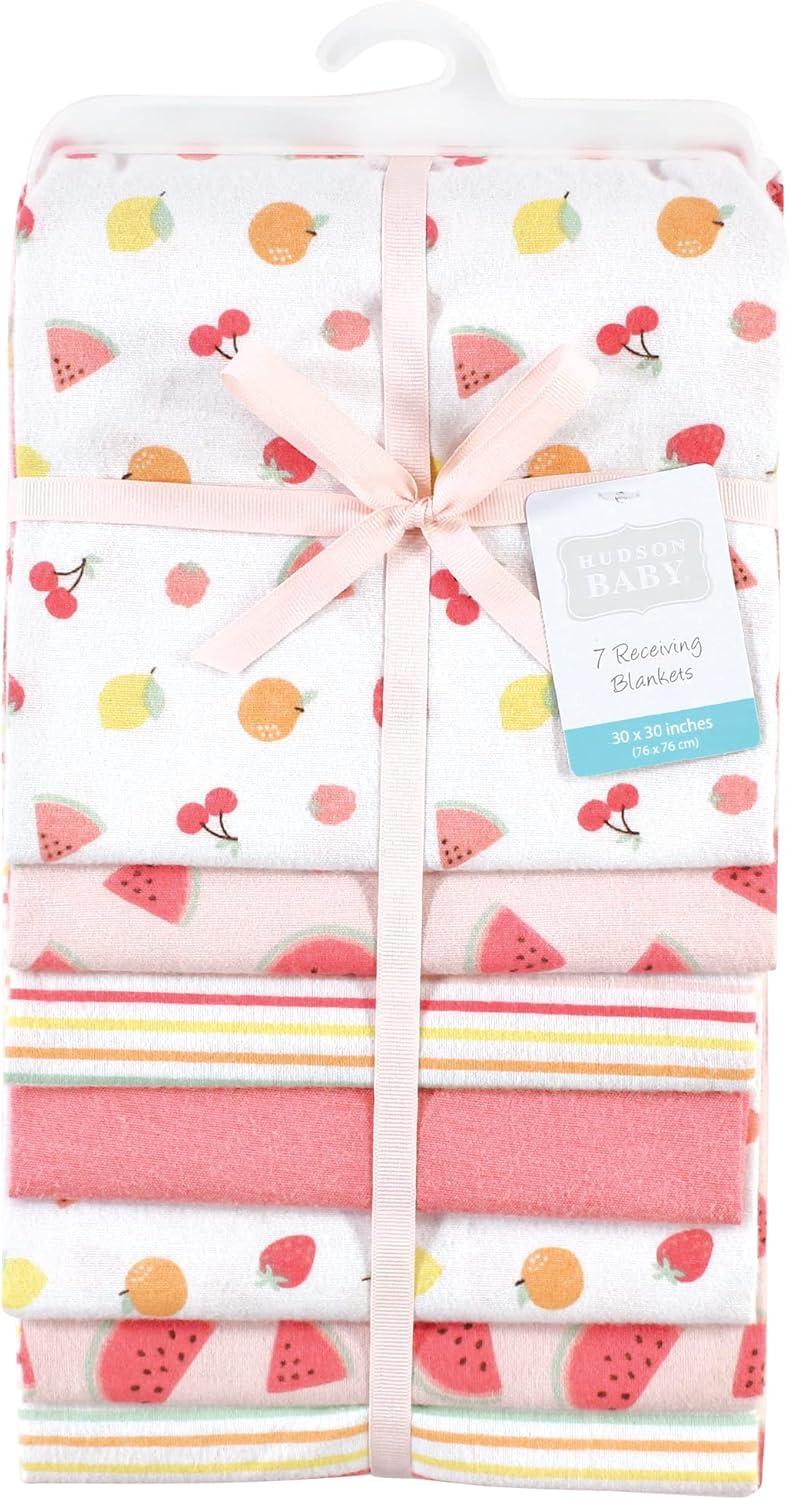 Hudson Baby Unisex Baby Cotton Flannel Receiving Blankets Bundle, Mustache Hat, One Size(Fruit Salad)