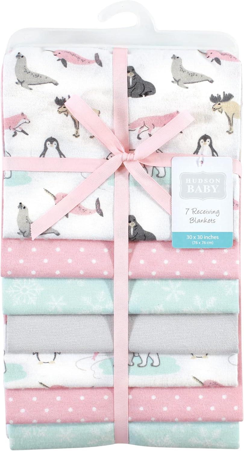 Hudson Baby Unisex Baby Cotton Flannel Receiving Blankets Bundle, Mustache Hat, One Size(Girl Arctic Animals)