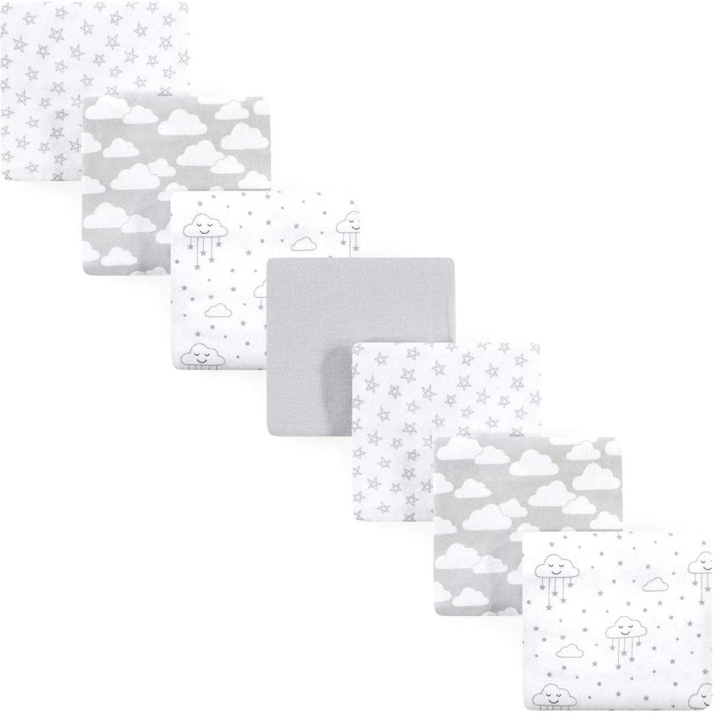 Hudson Baby Unisex Baby Cotton Flannel Receiving Blankets Bundle, Mustache Hat, One Size(Gray Clouds)