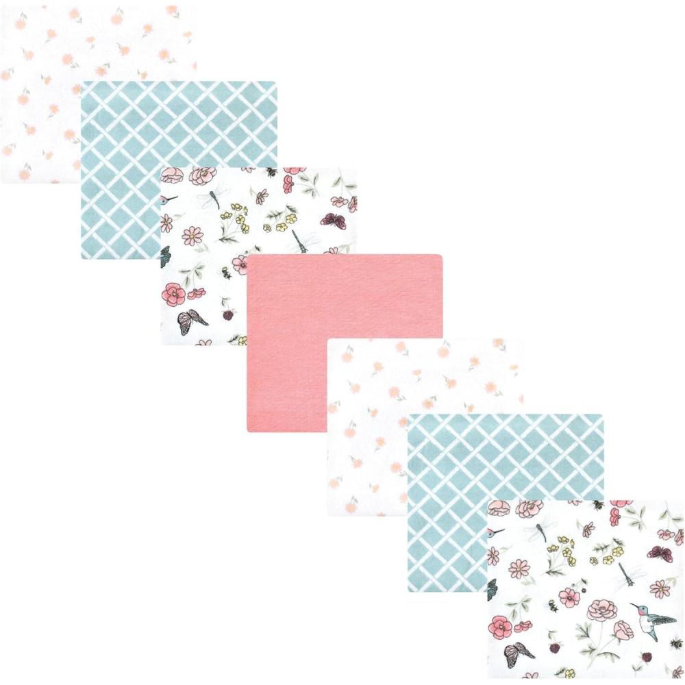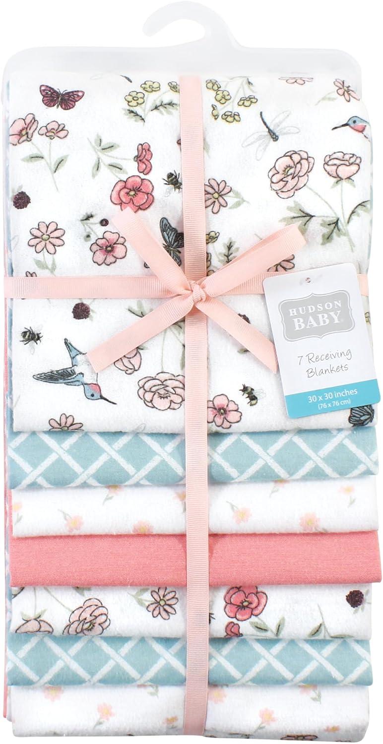 Hudson Baby Unisex Baby Cotton Flannel Receiving Blankets Bundle, Mustache Hat, One Size(Hummingbird Garden)