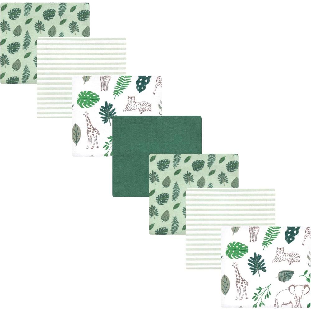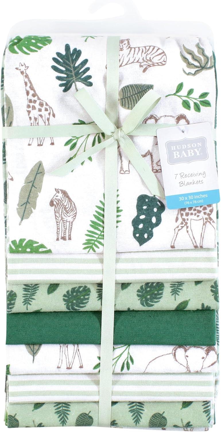 Hudson Baby Unisex Baby Cotton Flannel Receiving Blankets Bundle, Mustache Hat, One Size(Jungle)