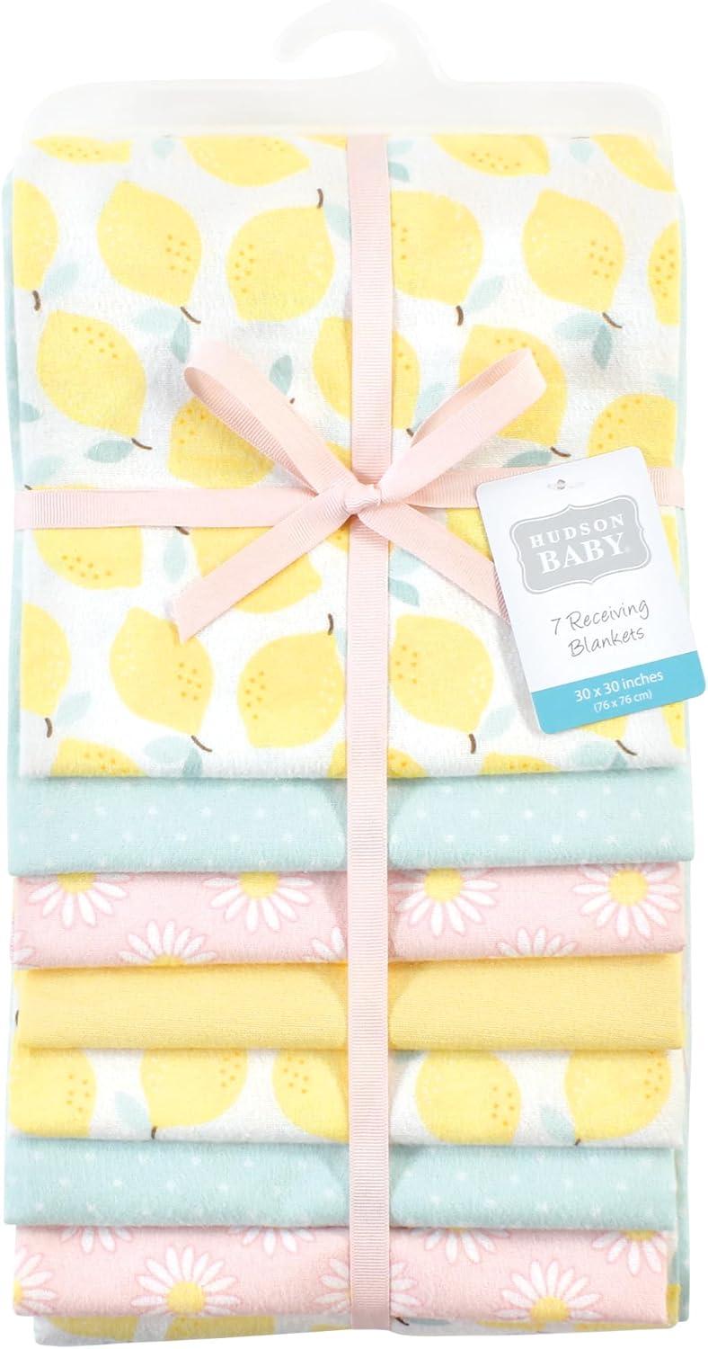Hudson Baby Unisex Baby Cotton Flannel Receiving Blankets Bundle, Mustache Hat, One Size(Lemon Daisy)