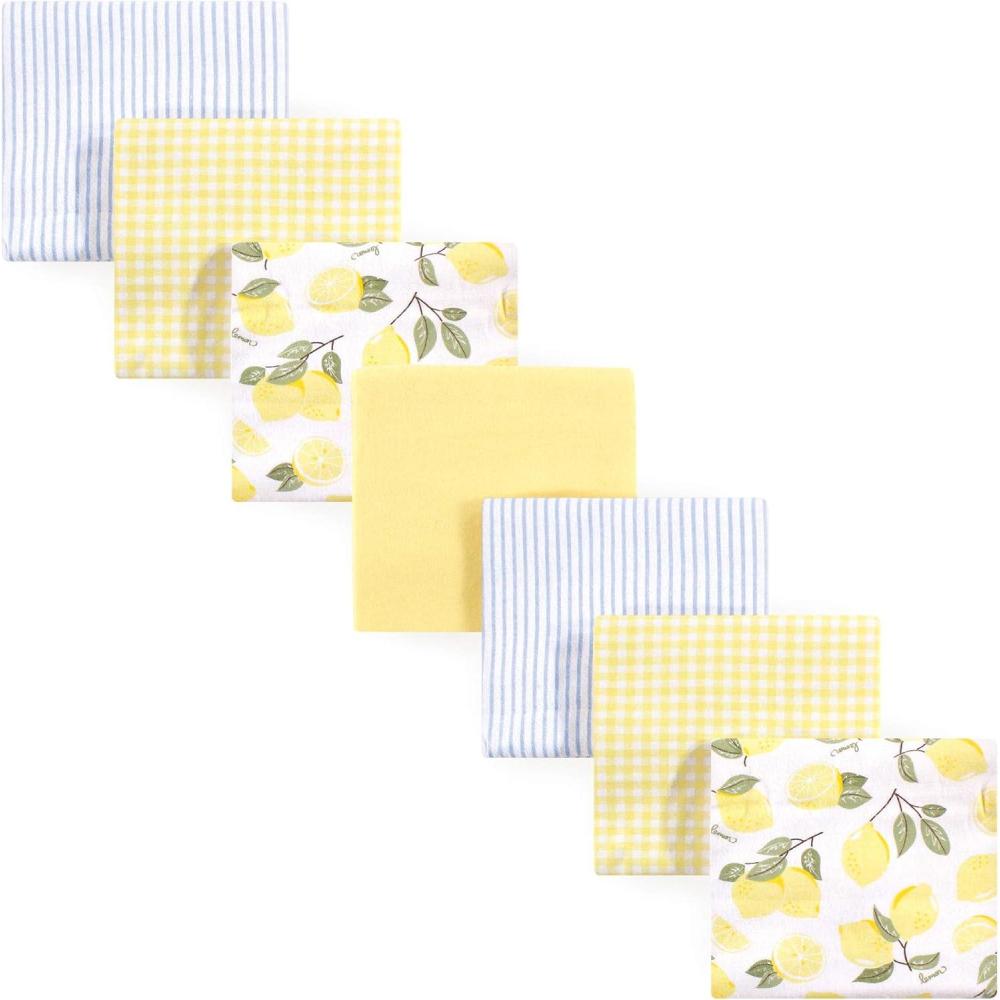 Hudson Baby Unisex Baby Cotton Flannel Receiving Blankets Bundle, Mustache Hat, One Size(Lemons)