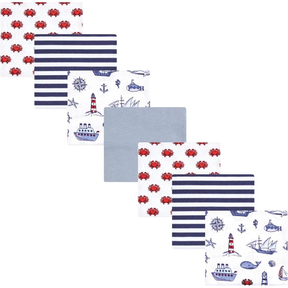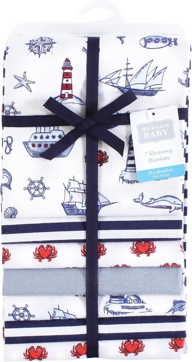 Hudson Baby Unisex Baby Cotton Flannel Receiving Blankets Bundle, Mustache Hat, One Size(Lighthouse)