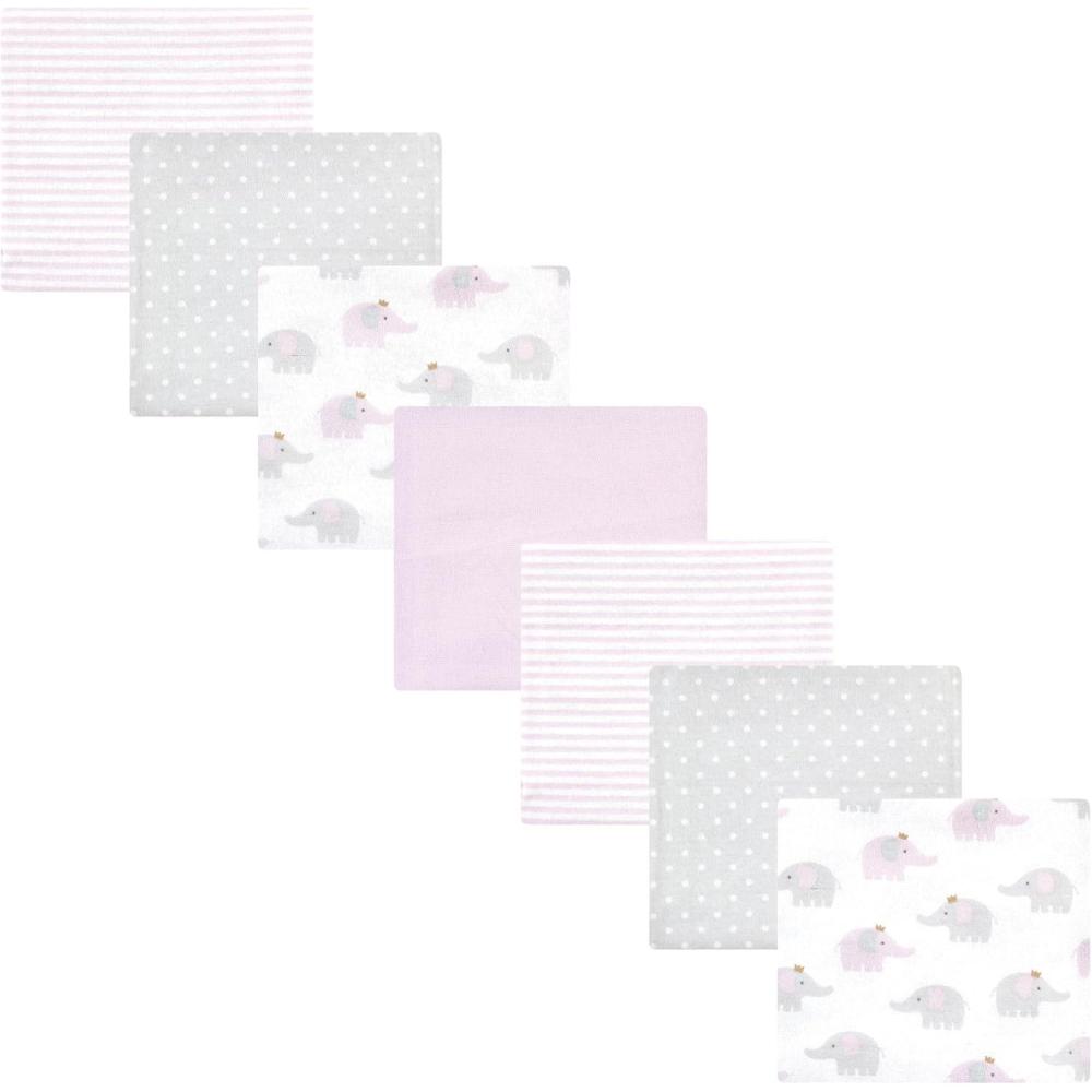 Hudson Baby Unisex Baby Cotton Flannel Receiving Blankets Bundle, Mustache Hat, One Size(Lilac Elephants)
