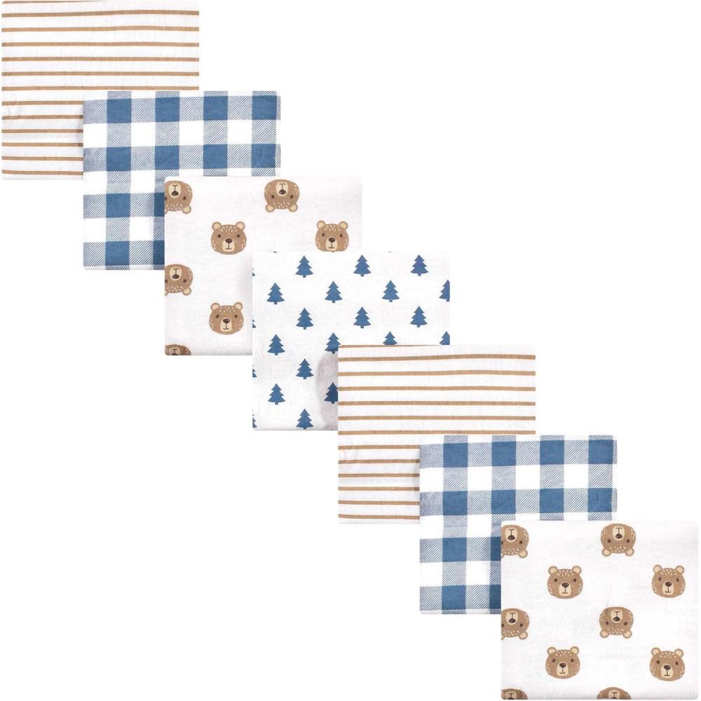 Hudson Baby Unisex Baby Cotton Flannel Receiving Blankets Bundle, Mustache Hat, One Size(Little Bear)