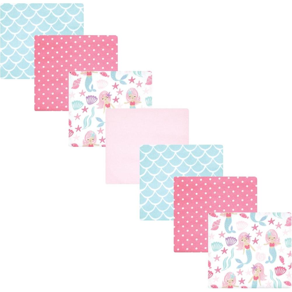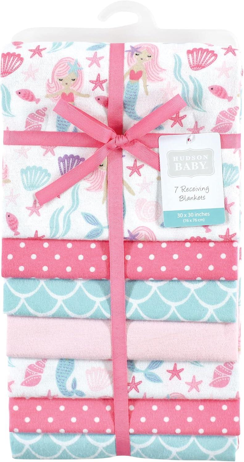 Hudson Baby Unisex Baby Cotton Flannel Receiving Blankets Bundle, Mustache Hat, One Size(Mermaid)