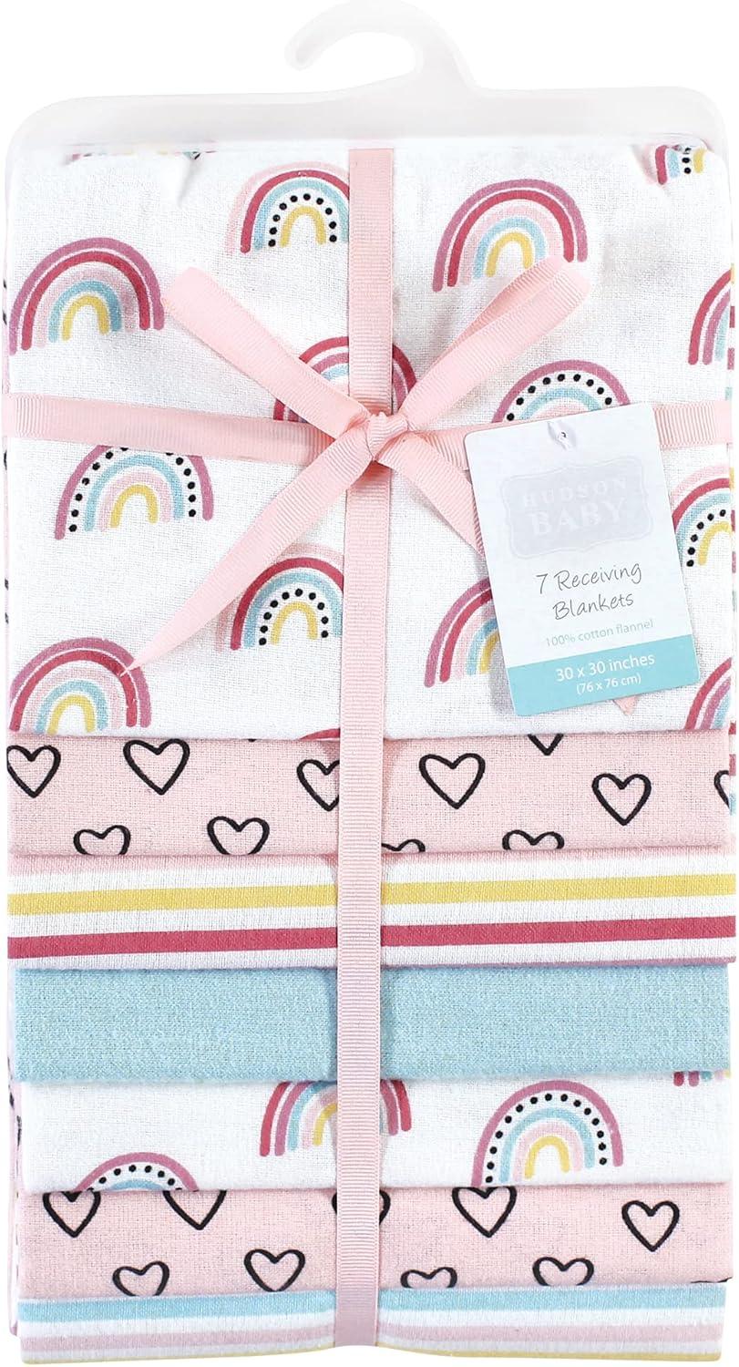 Hudson Baby Unisex Baby Cotton Flannel Receiving Blankets Bundle, Mustache Hat, One Size(Modern Rainbow)