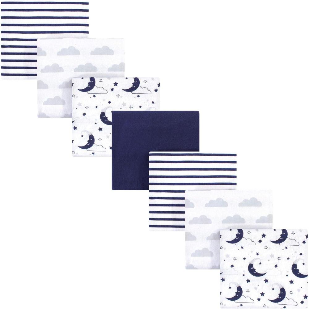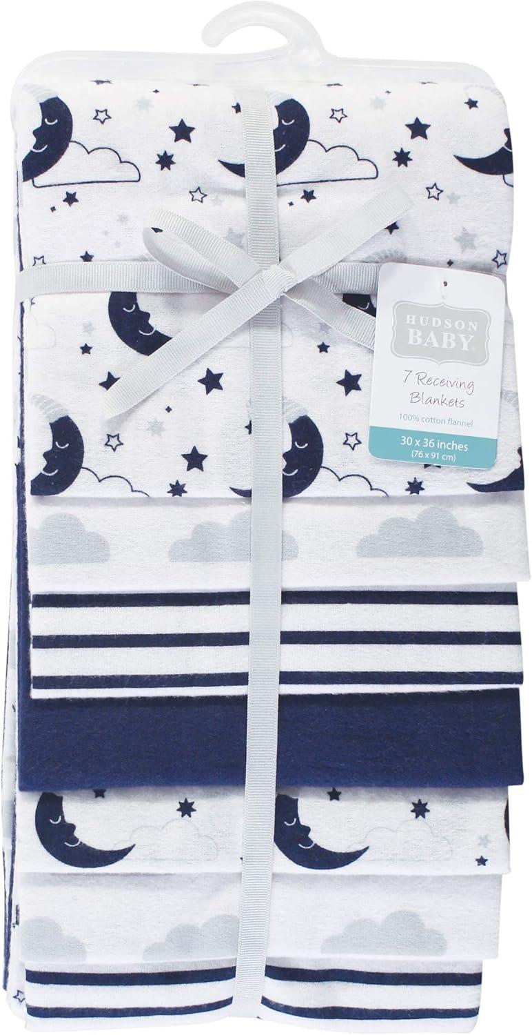 Hudson Baby Unisex Baby Cotton Flannel Receiving Blankets Bundle, Mustache Hat, One Size(Moon)