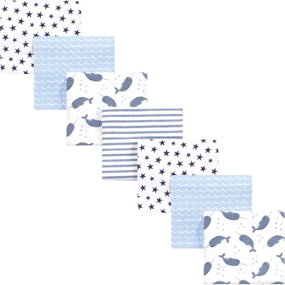 Hudson Baby Unisex Baby Cotton Flannel Receiving Blankets Bundle, Mustache Hat, One Size(Narwhal)