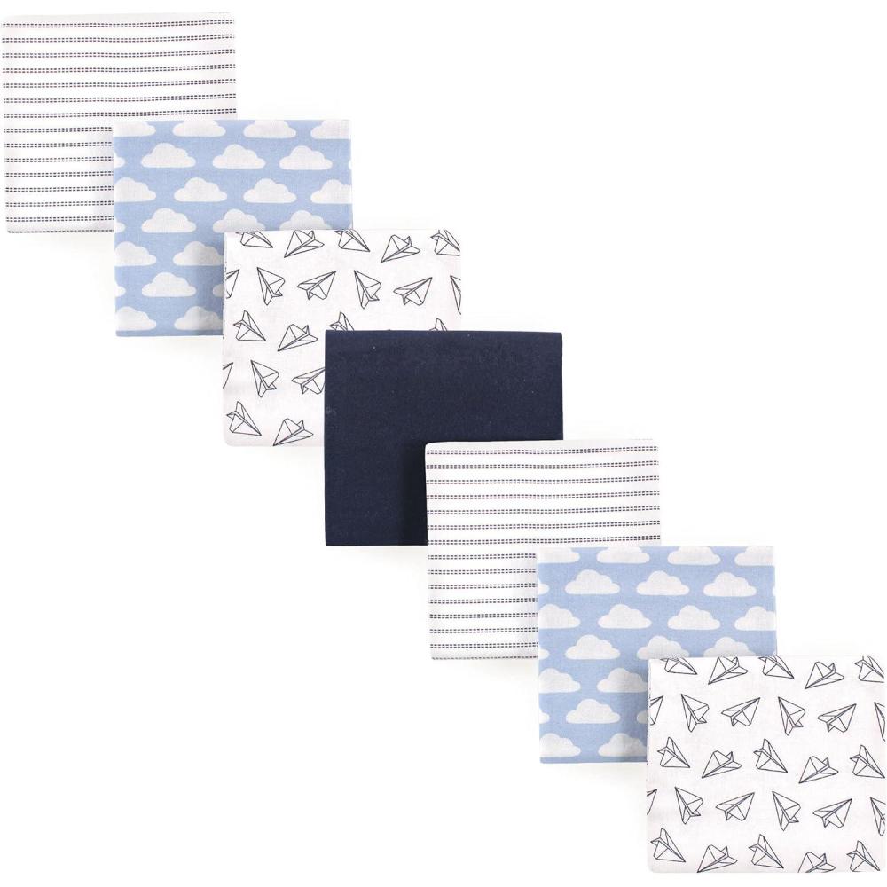 Hudson Baby Unisex Baby Cotton Flannel Receiving Blankets Bundle, Mustache Hat, One Size(Paper Airplane)