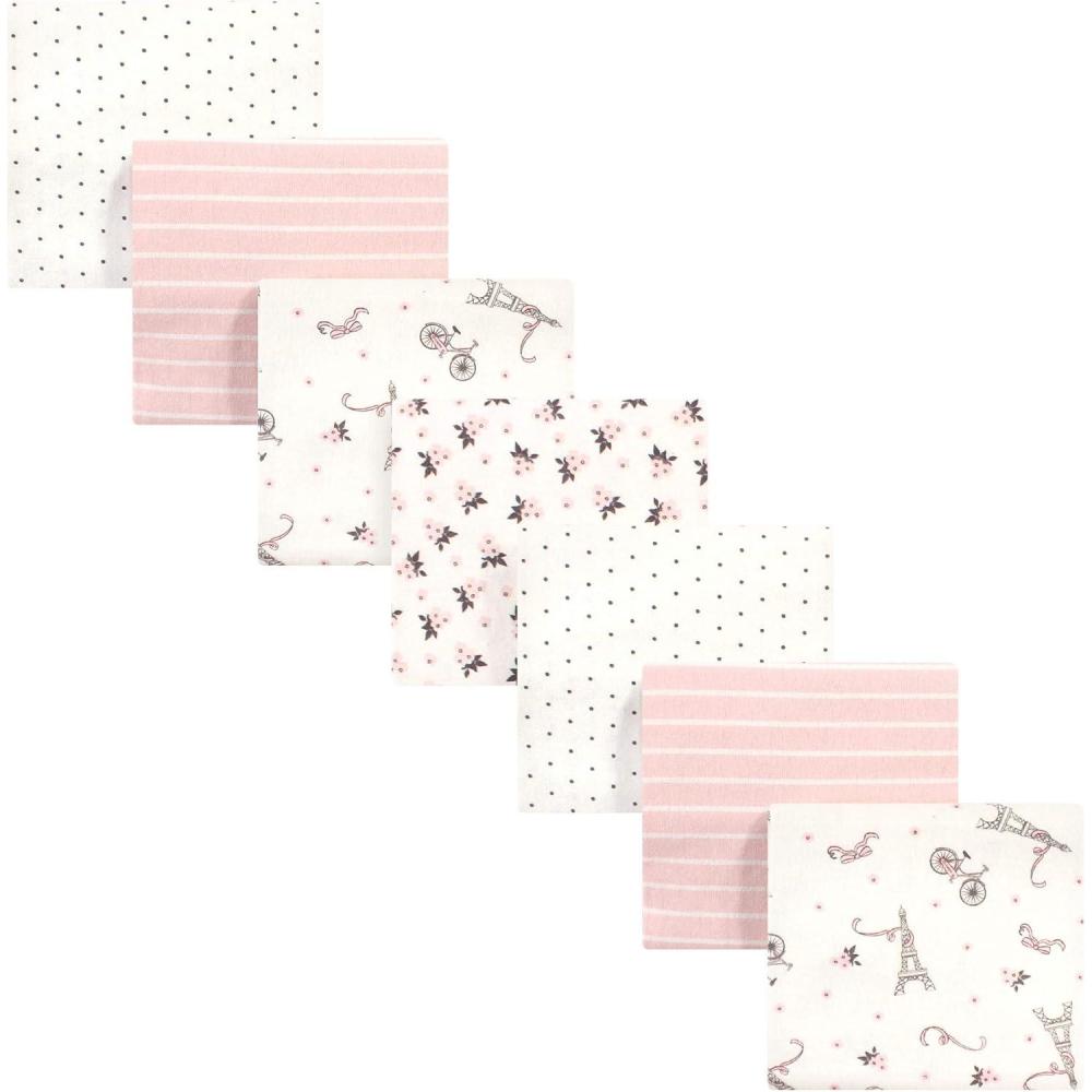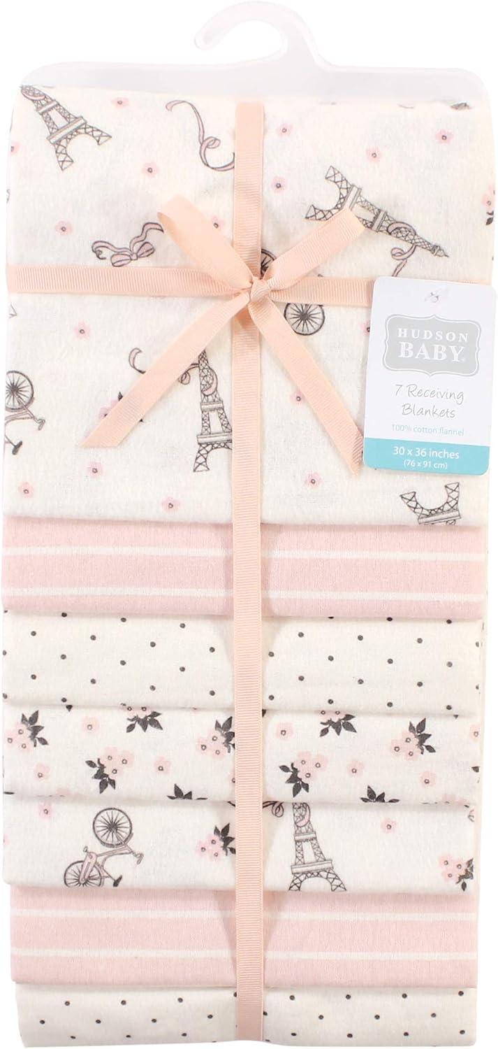 Hudson Baby Unisex Baby Cotton Flannel Receiving Blankets Bundle, Mustache Hat, One Size(Paris)