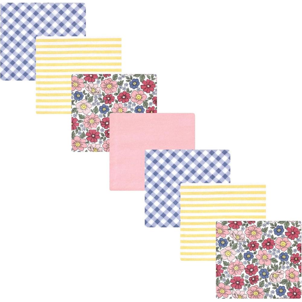 Hudson Baby Unisex Baby Cotton Flannel Receiving Blankets Bundle, Mustache Hat, One Size(Pink Blue Pretty Floral)