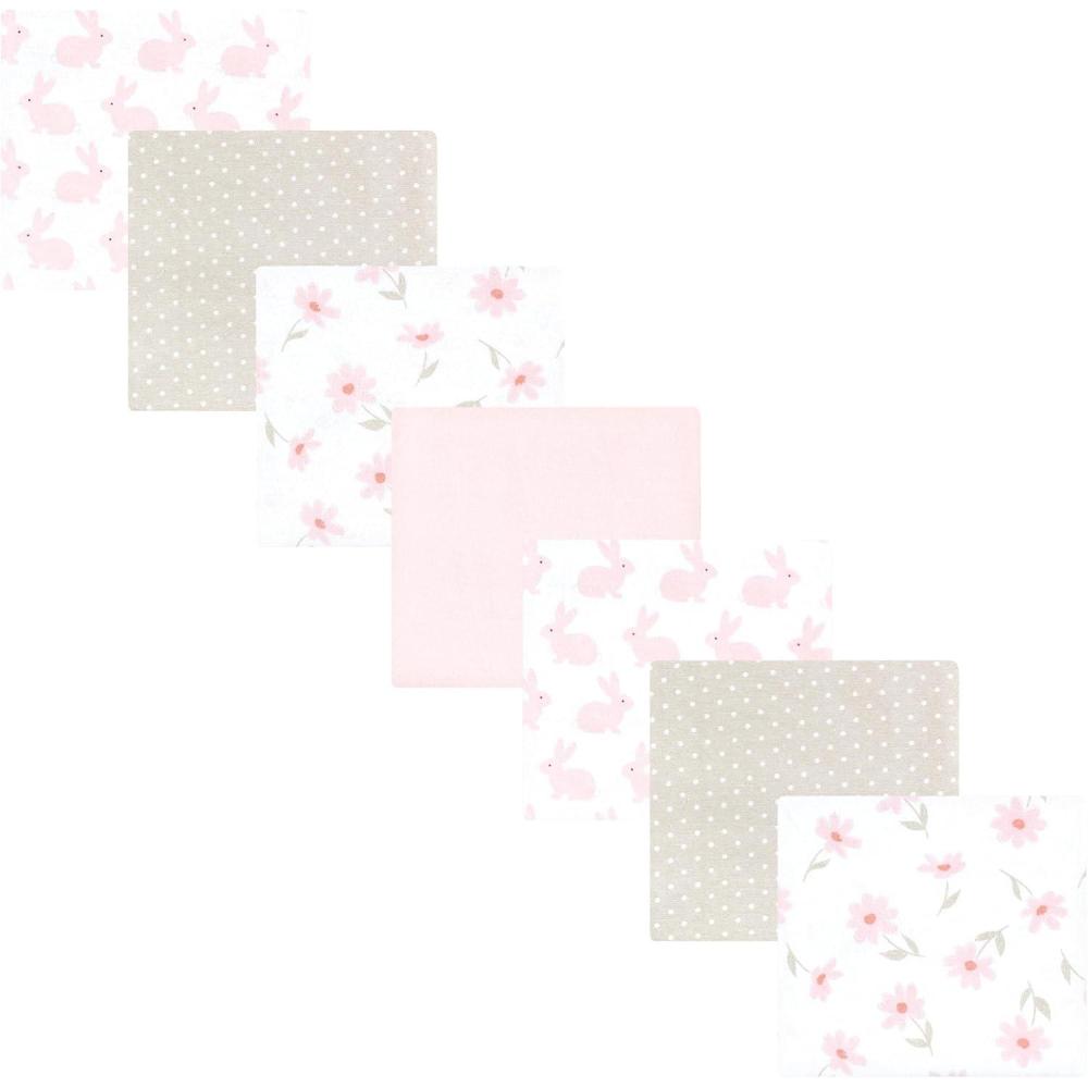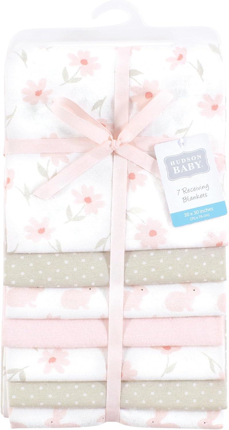 Hudson Baby Unisex Baby Cotton Flannel Receiving Blankets Bundle, Mustache Hat, One Size(Pink Honey Bunny)
