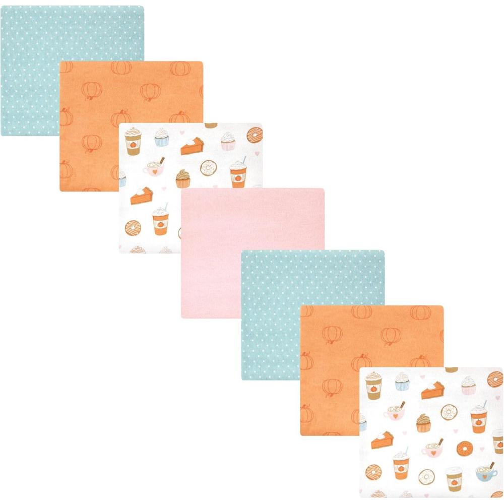 Hudson Baby Unisex Baby Cotton Flannel Receiving Blankets Bundle, Mustache Hat, One Size(Pumpkin Spice)