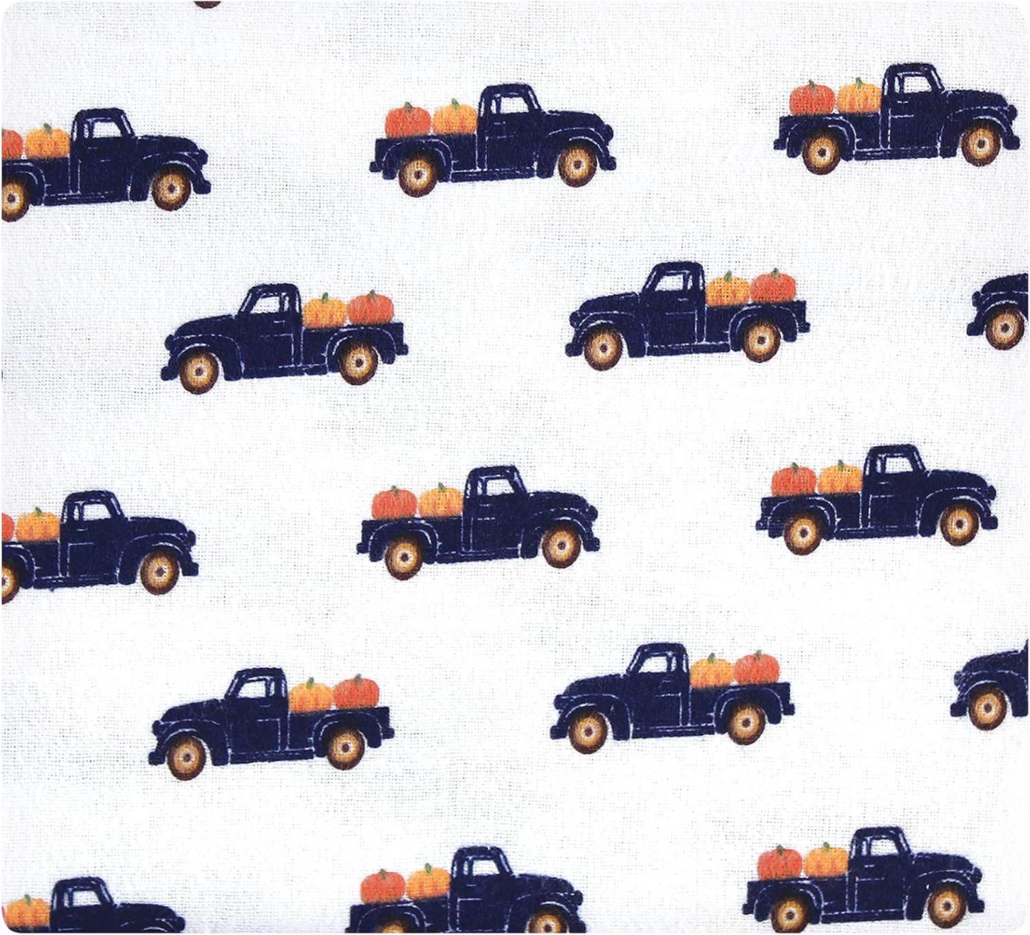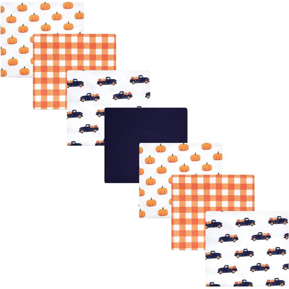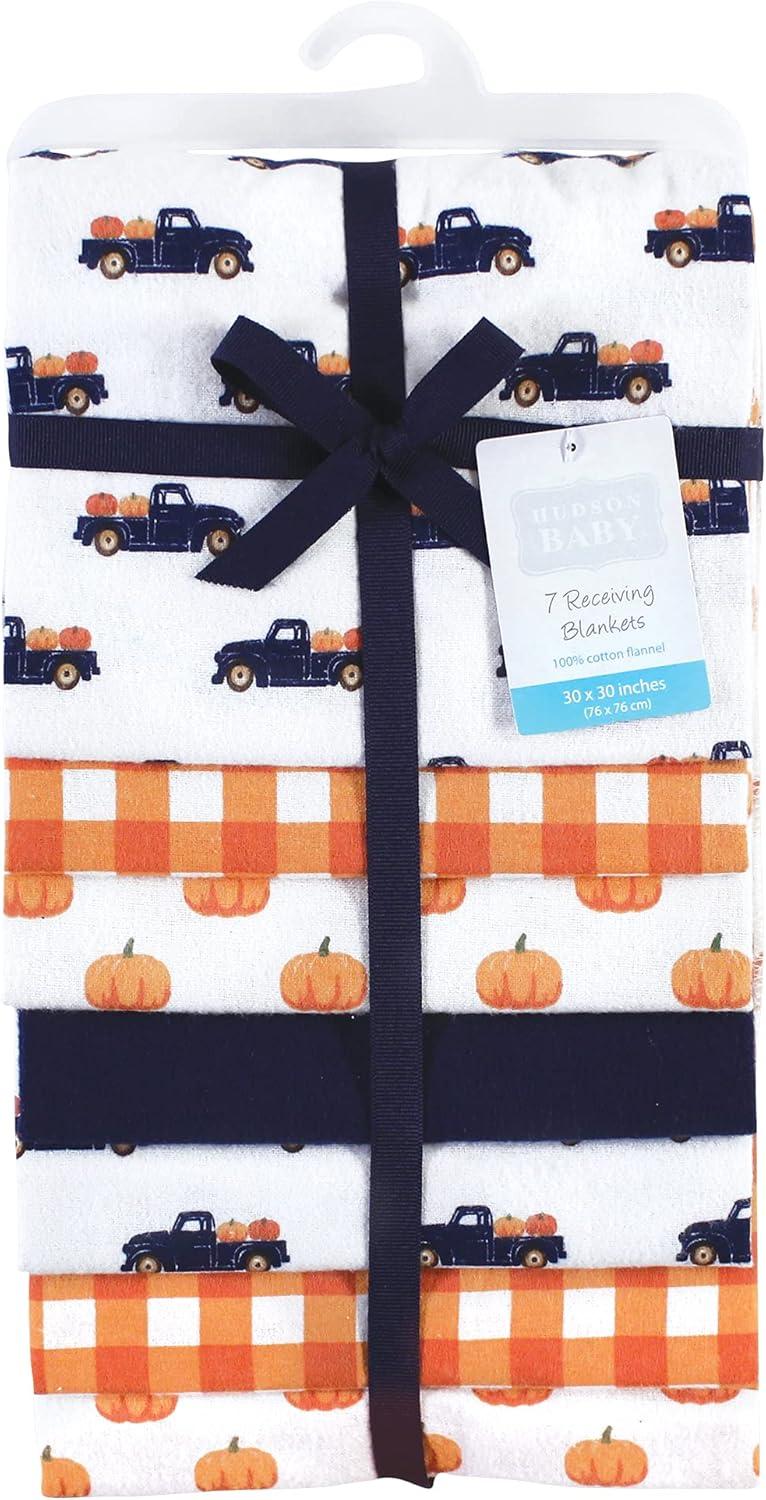 Hudson Baby Unisex Baby Cotton Flannel Receiving Blankets Bundle, Mustache Hat, One Size(Pumpkin Truck)