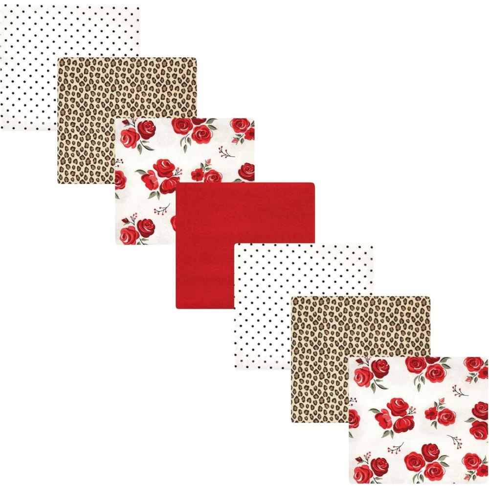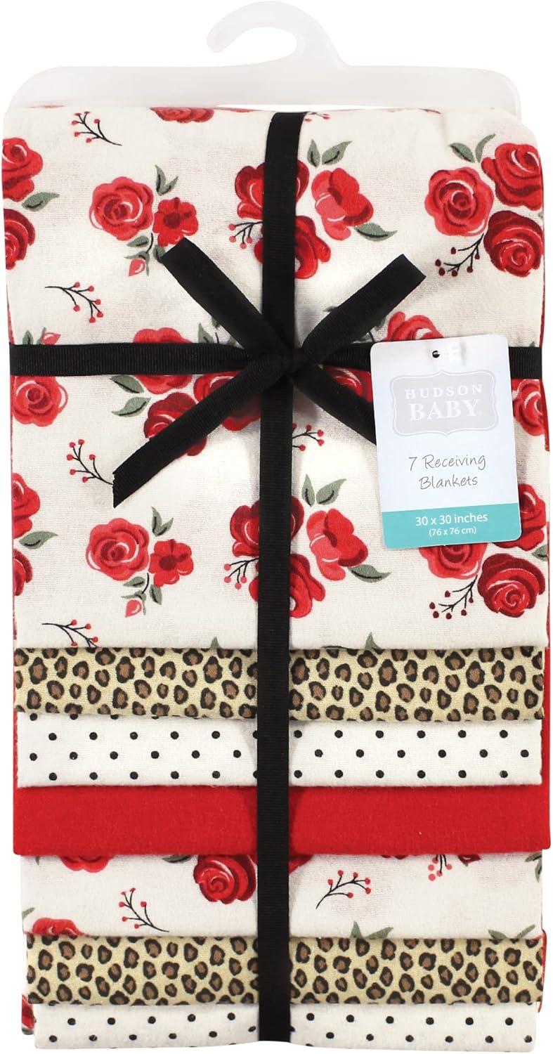 Hudson Baby Unisex Baby Cotton Flannel Receiving Blankets Bundle, Mustache Hat, One Size(Rose Leopard)