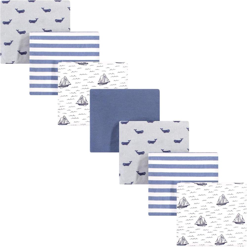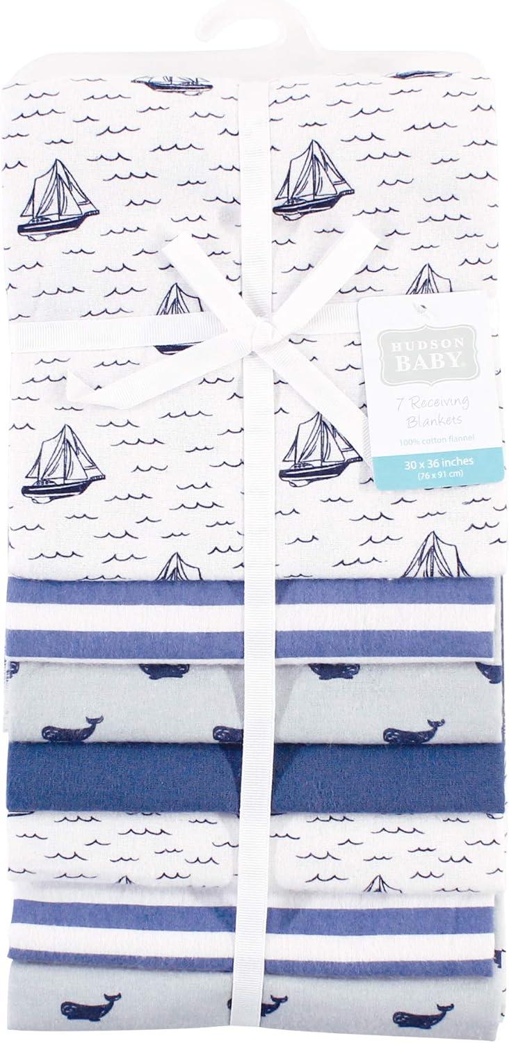 Hudson Baby Unisex Baby Cotton Flannel Receiving Blankets Bundle, Mustache Hat, One Size(Sailboat)