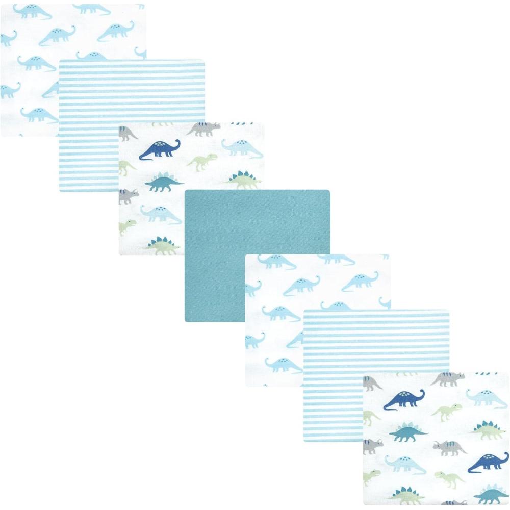 Hudson Baby Unisex Baby Cotton Flannel Receiving Blankets Bundle, Mustache Hat, One Size(Soft Teal Dino)