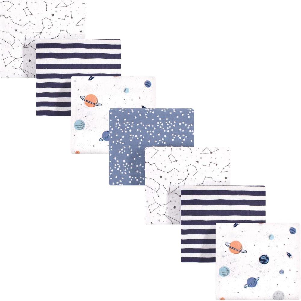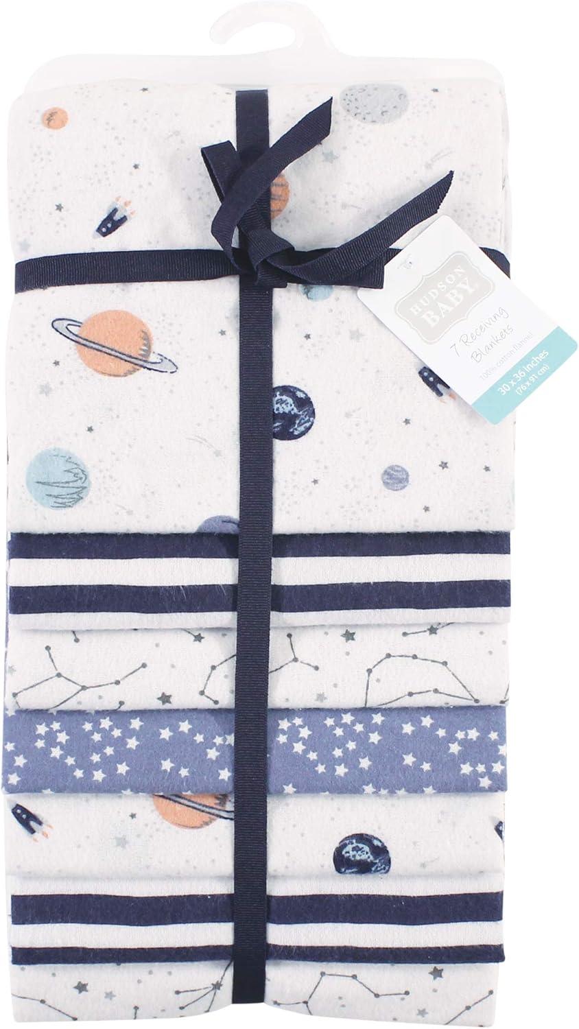 Hudson Baby Unisex Baby Cotton Flannel Receiving Blankets Bundle, Mustache Hat, One Size(Space)
