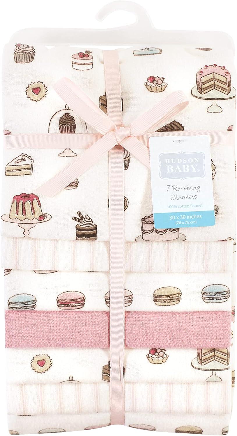 Hudson Baby Unisex Baby Cotton Flannel Receiving Blankets Bundle, Mustache Hat, One Size(Sweet Bakery)