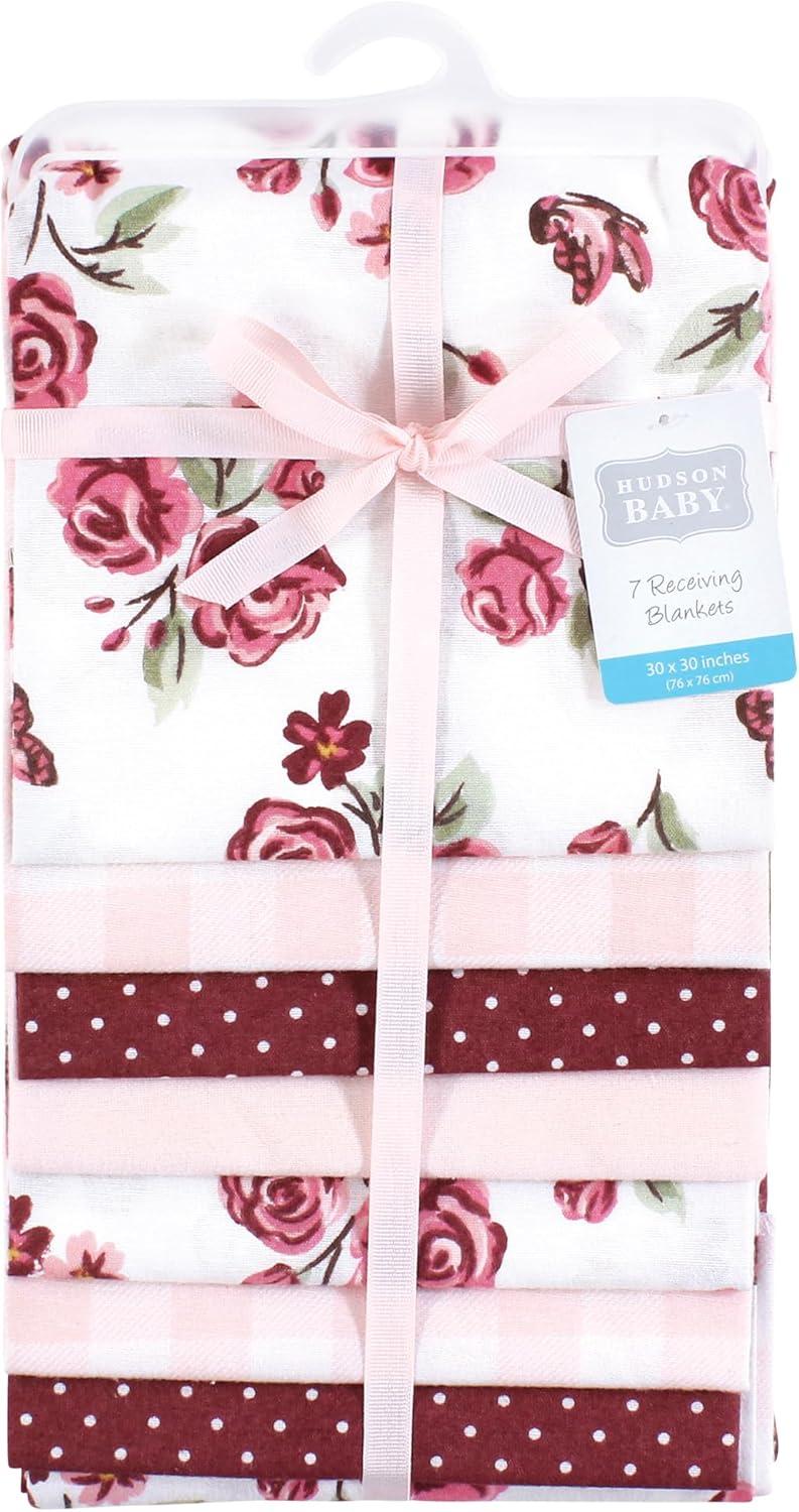 Hudson Baby Unisex Baby Cotton Flannel Receiving Blankets Bundle, Mustache Hat, One Size(Sweet Roses)