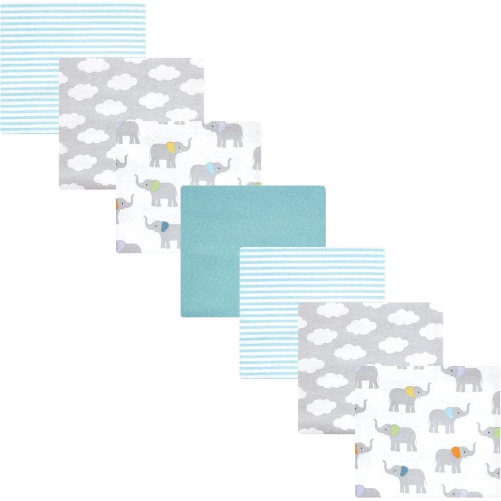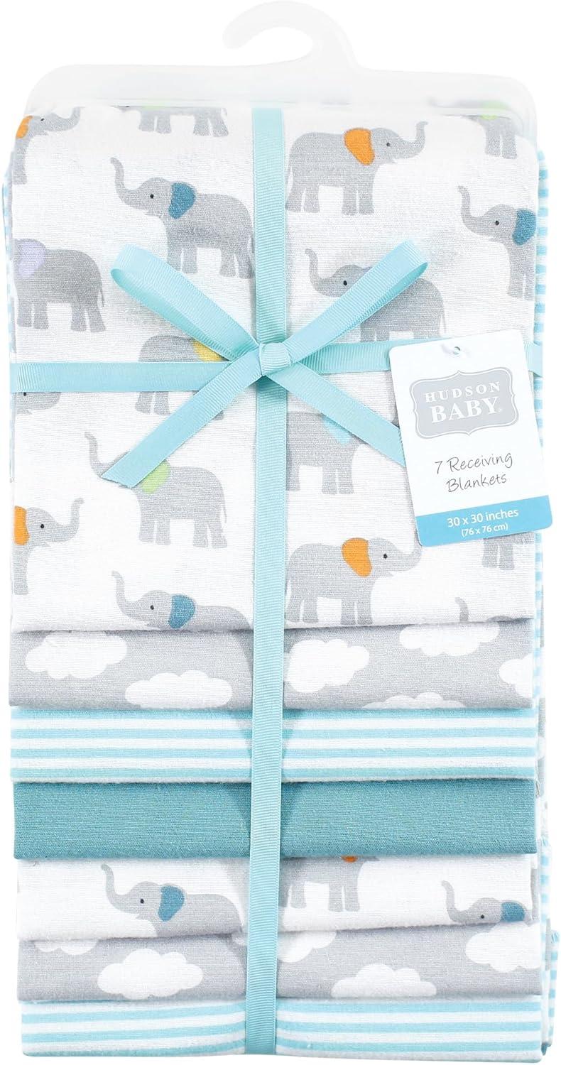 Hudson Baby Unisex Baby Cotton Flannel Receiving Blankets Bundle, Mustache Hat, One Size(Teal Elephant)