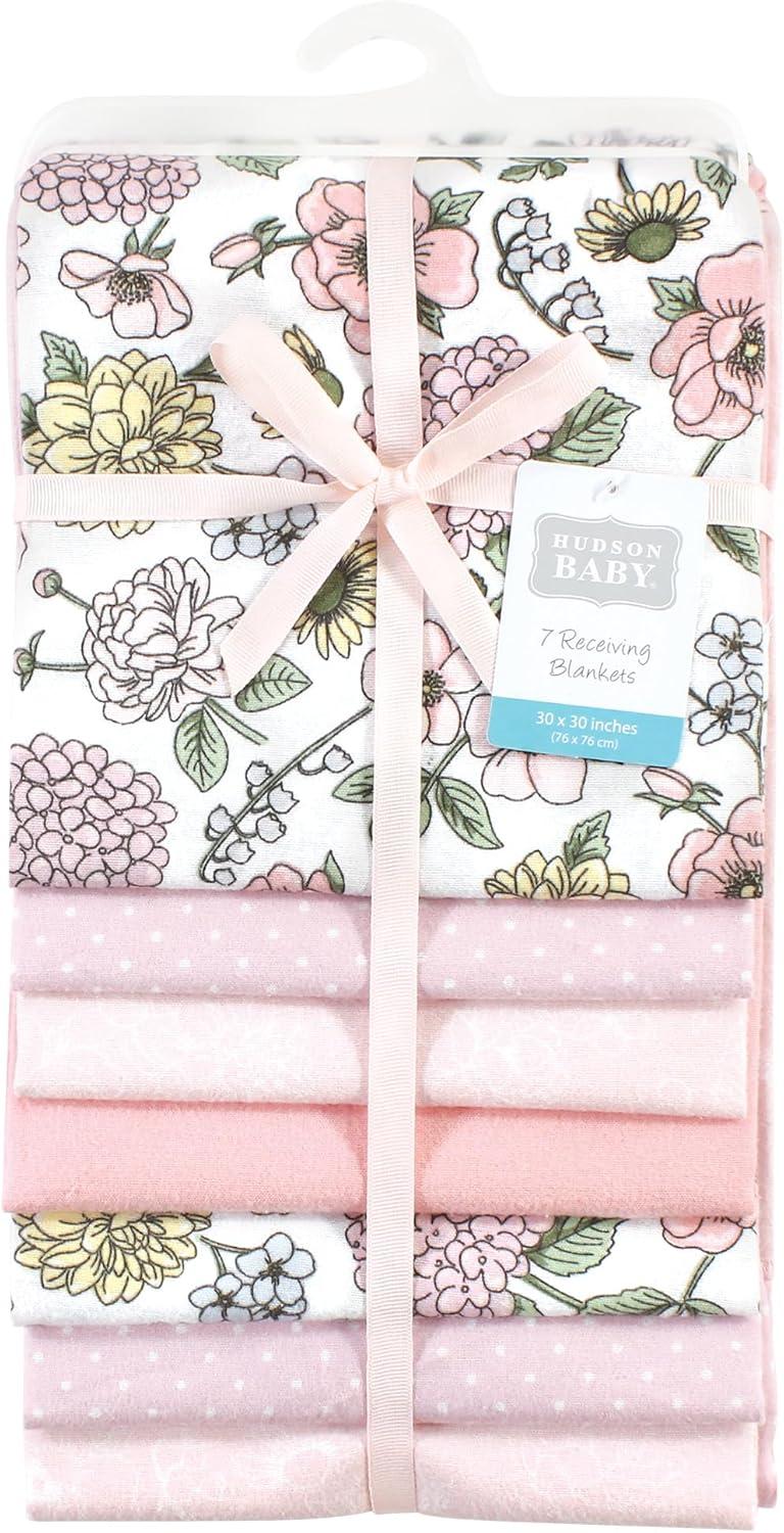 Hudson Baby Unisex Baby Cotton Flannel Receiving Blankets Bundle, Mustache Hat, One Size(Vintage Blossom)