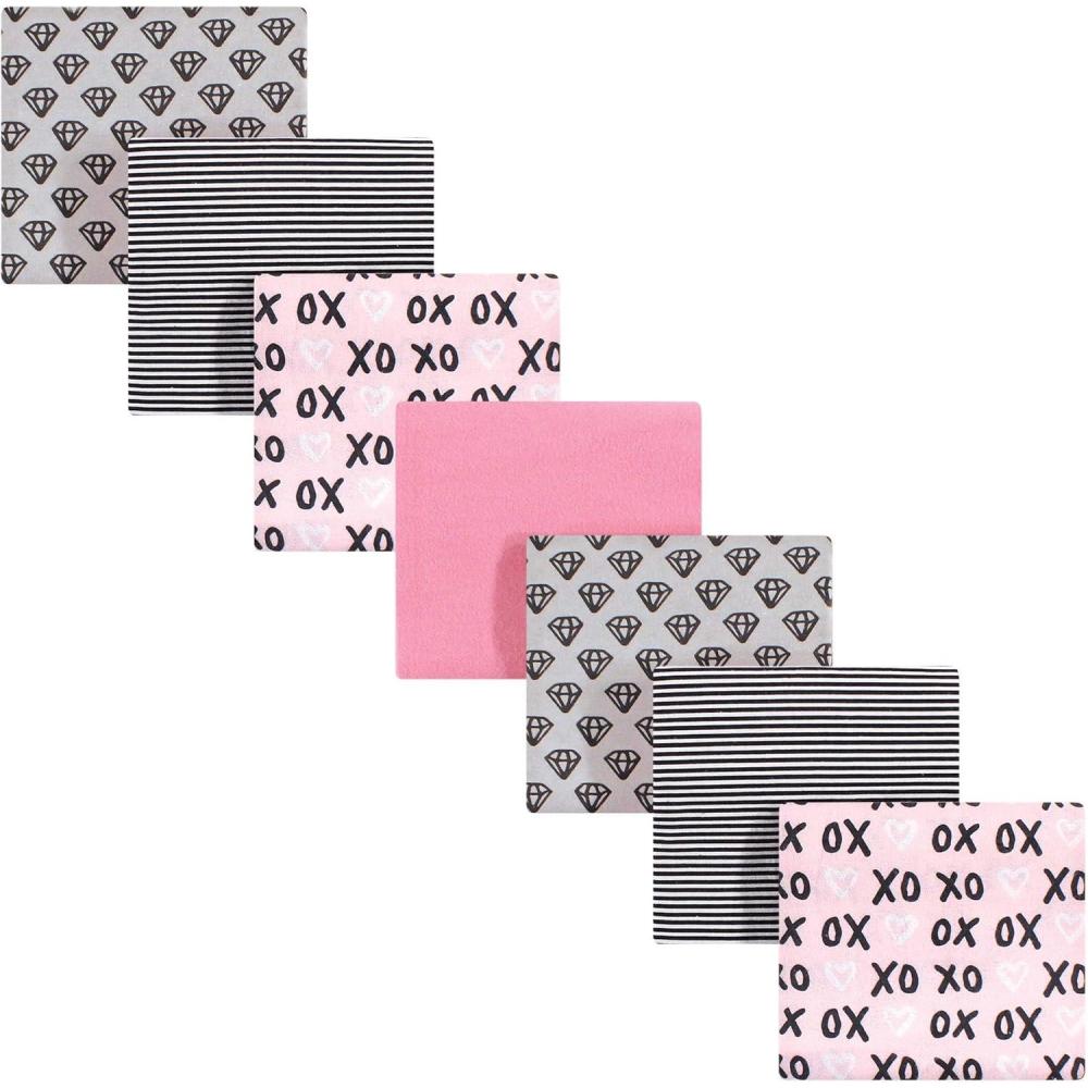 Hudson Baby Unisex Baby Cotton Flannel Receiving Blankets Bundle, Mustache Hat, One Size(Xoxo)