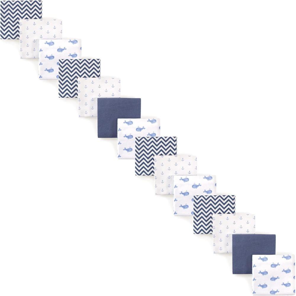 Hudson Baby Unisex Baby Cotton Flannel Receiving Blankets Bundle Set, Woodland, One Size(Blue Whale 14-piece)