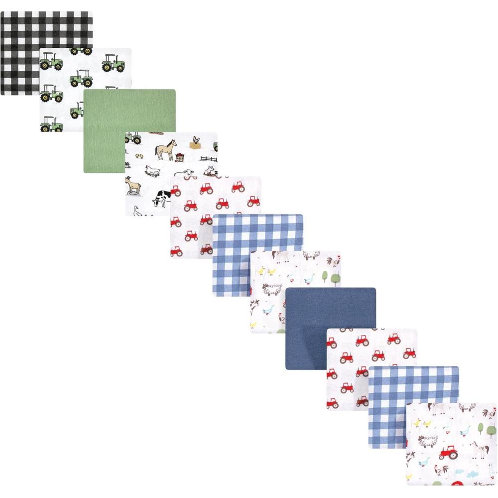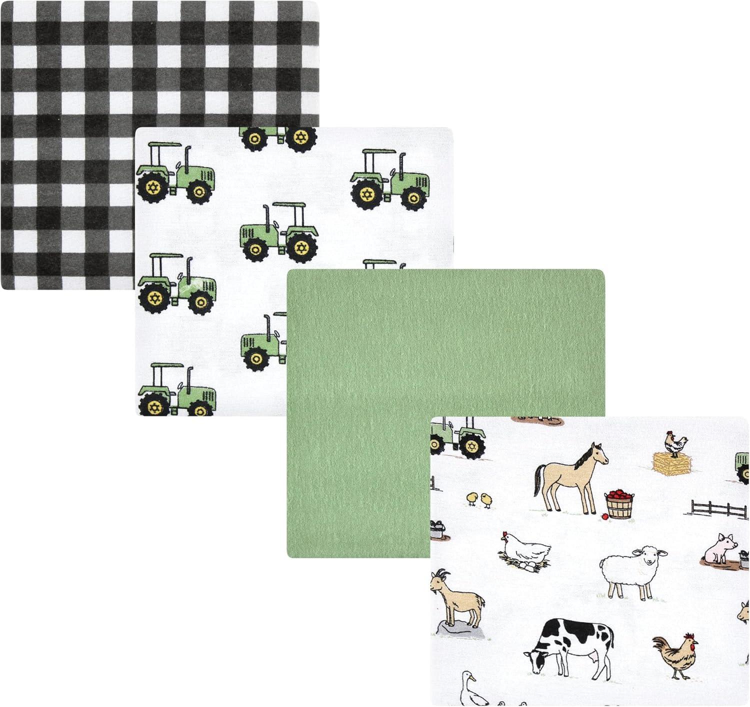 Hudson Baby Unisex Baby Cotton Flannel Receiving Blankets Bundle Set, Woodland, One Size(Boy Farm Boy Farm Animals)