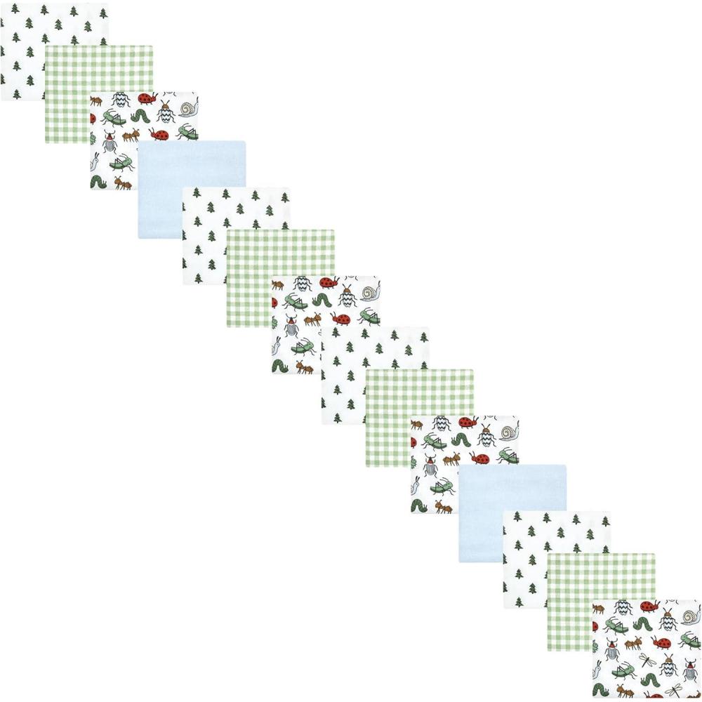 Hudson Baby Unisex Baby Cotton Flannel Receiving Blankets Bundle Set, Woodland, One Size(Bugs)