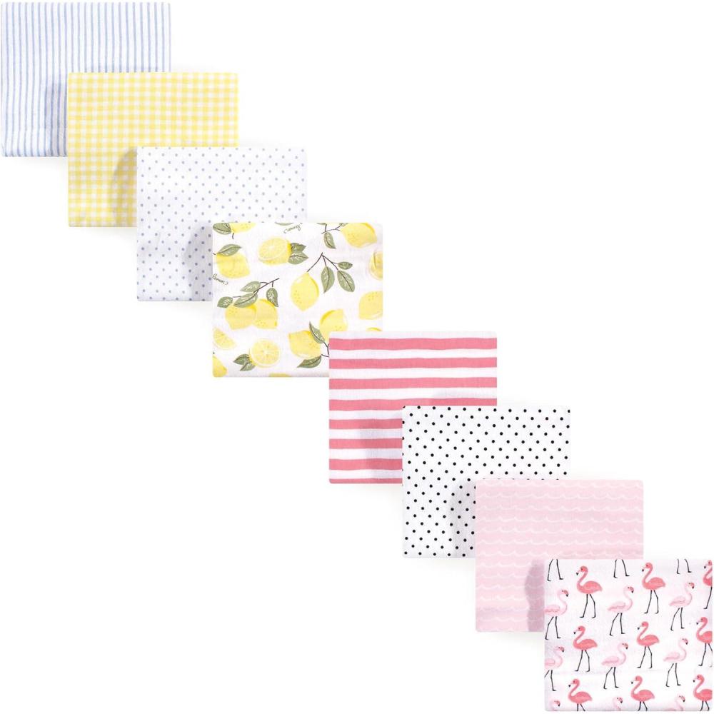 Hudson Baby Unisex Baby Cotton Flannel Receiving Blankets Bundle Set, Woodland, One Size(Lemons Flamingos 8-pack)
