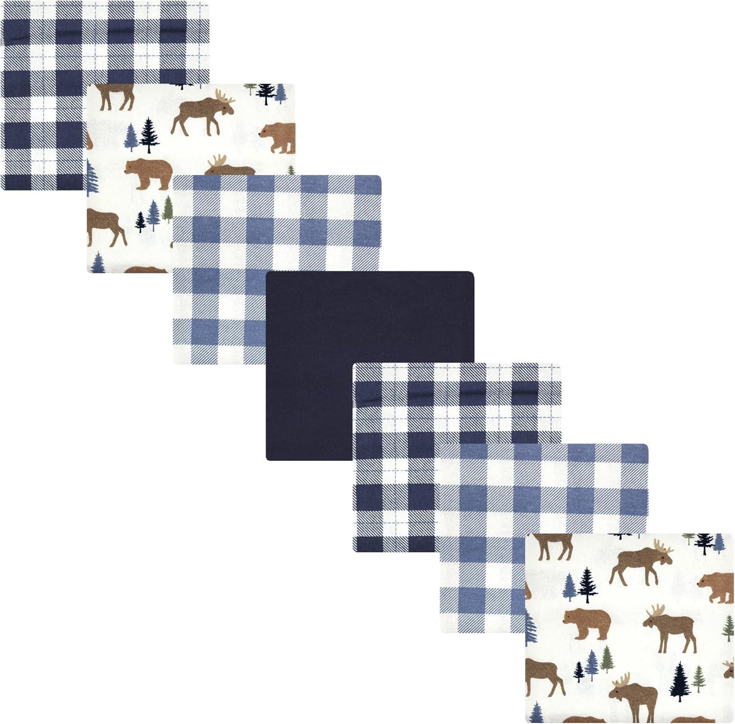 Hudson Baby Unisex Baby Cotton Flannel Receiving Blankets Bundle Set, Woodland, One Size(Moose Bear)