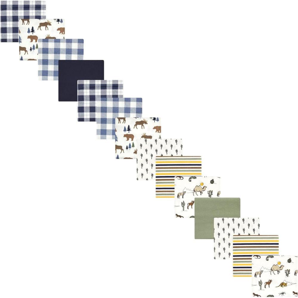 Hudson Baby Unisex Baby Cotton Flannel Receiving Blankets Bundle Set, Woodland, One Size(Moose Bear Desert Animals)
