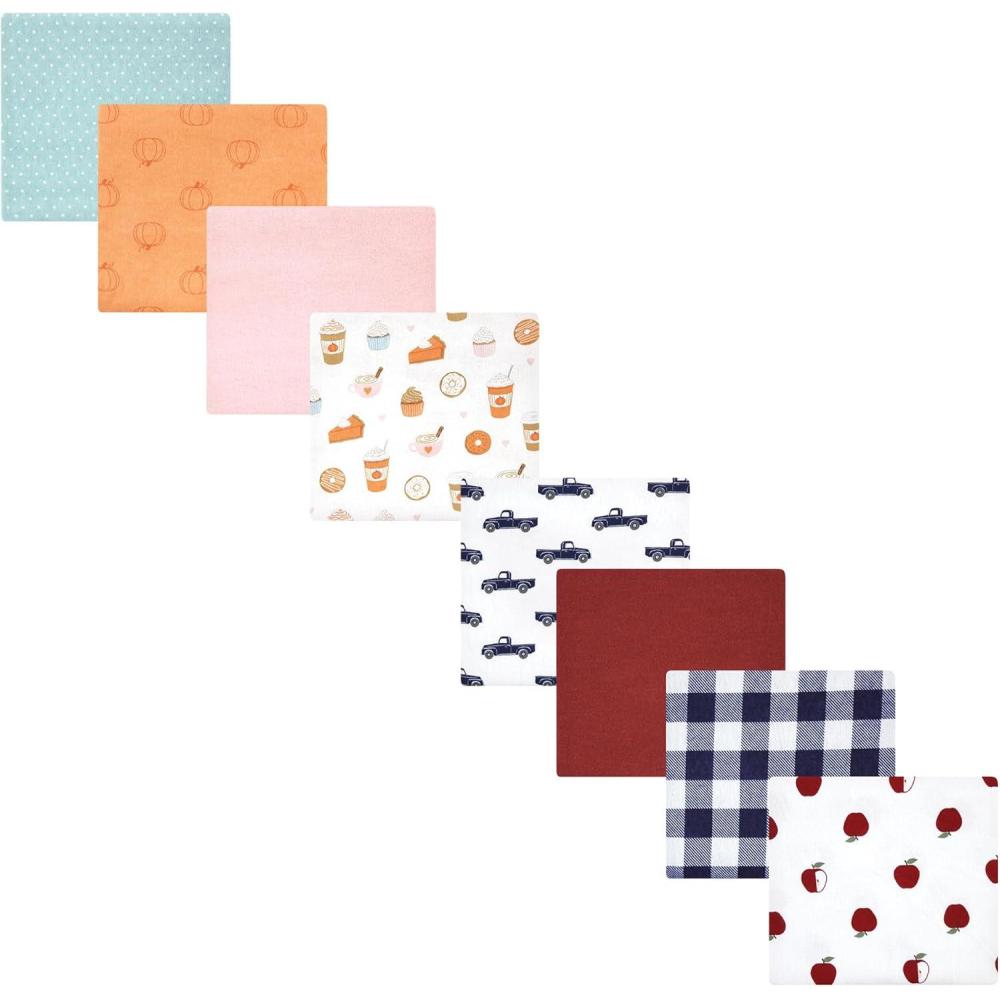 Hudson Baby Unisex Baby Cotton Flannel Receiving Blankets Bundle Set, Woodland, One Size(Pumpkin Spice Apple Orchard)