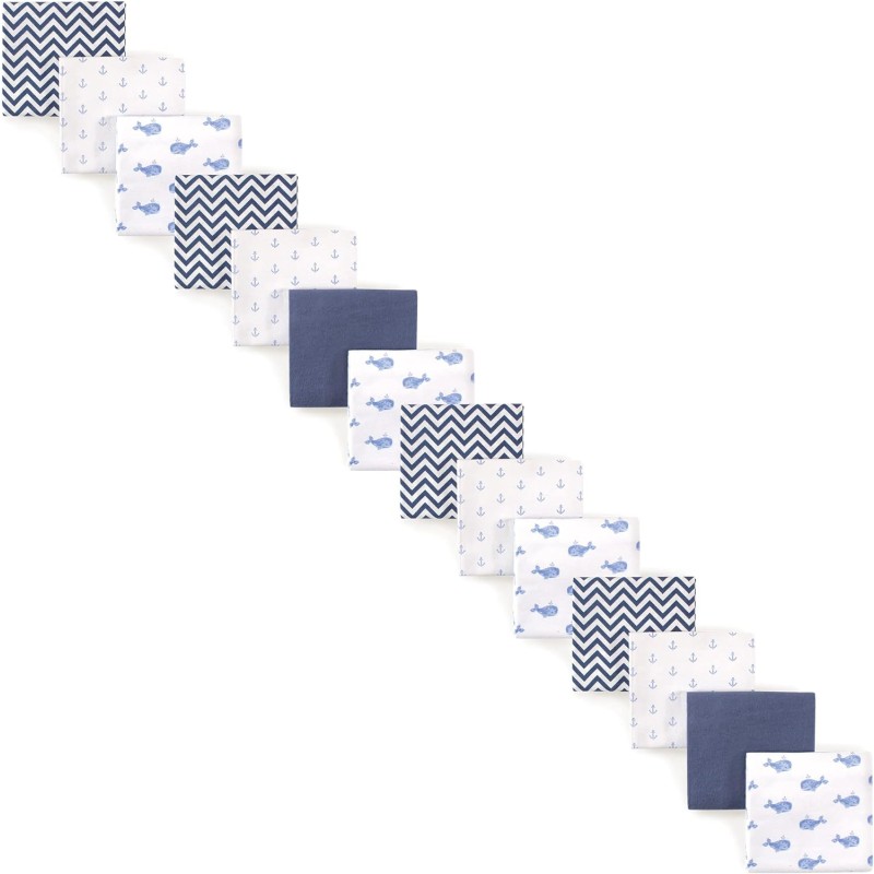 Hudson Baby Unisex Baby Cotton Flannel Receiving Blankets, Eucalyptus, One Size(Blue Whale 14-piece One Size)