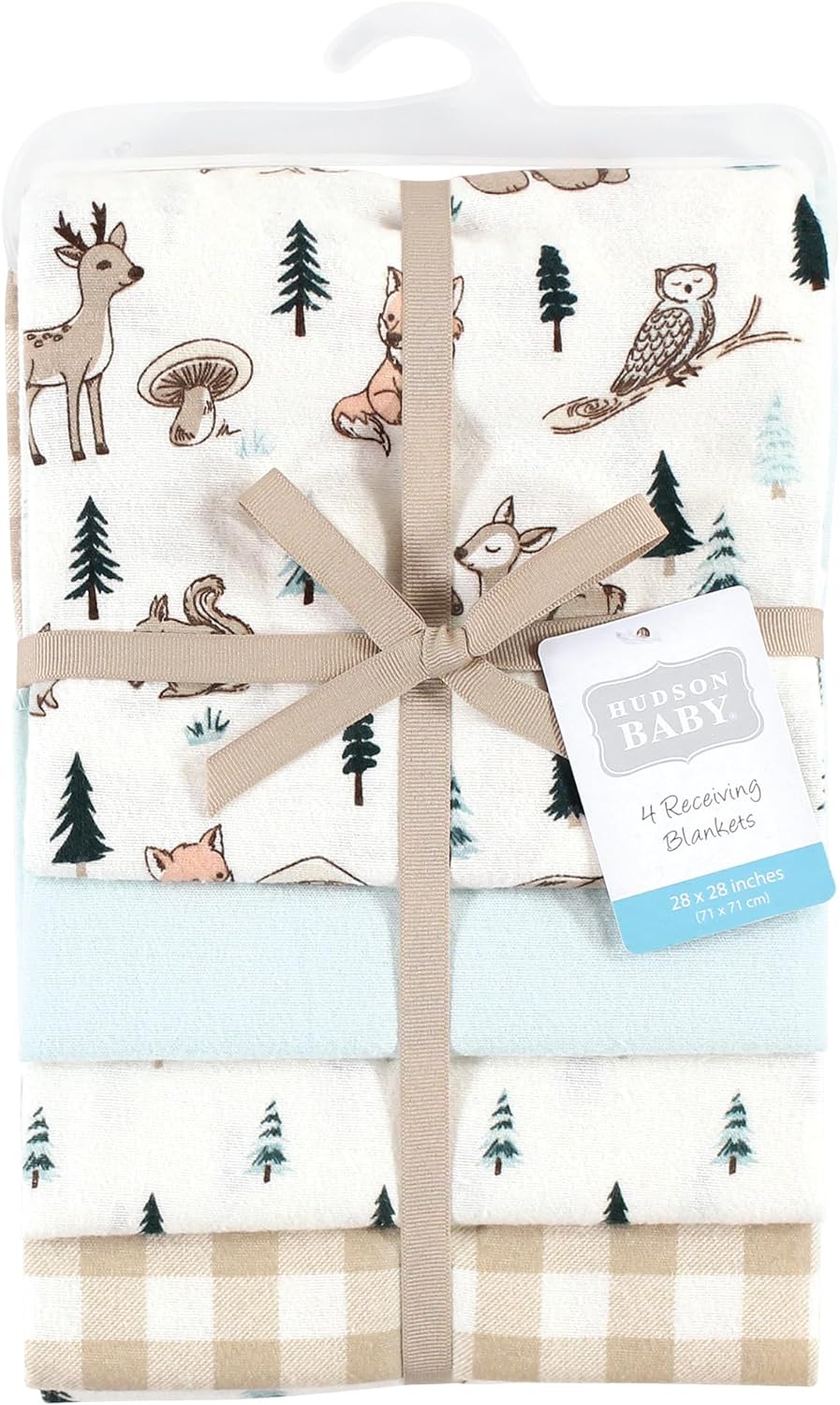 Hudson Baby Unisex Baby Cotton Flannel Receiving Blankets, Eucalyptus, One Size(Boy Woodland Pals One Size)