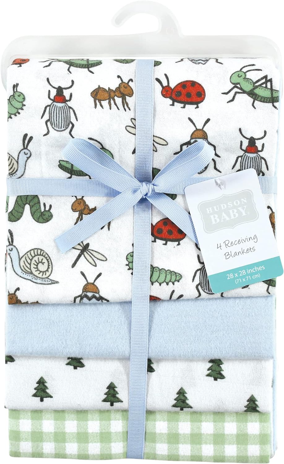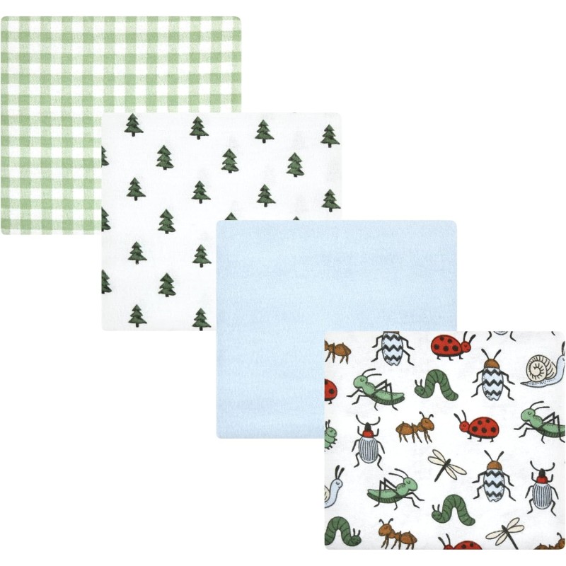 Hudson Baby Unisex Baby Cotton Flannel Receiving Blankets, Eucalyptus, One Size(Bugs One Size)