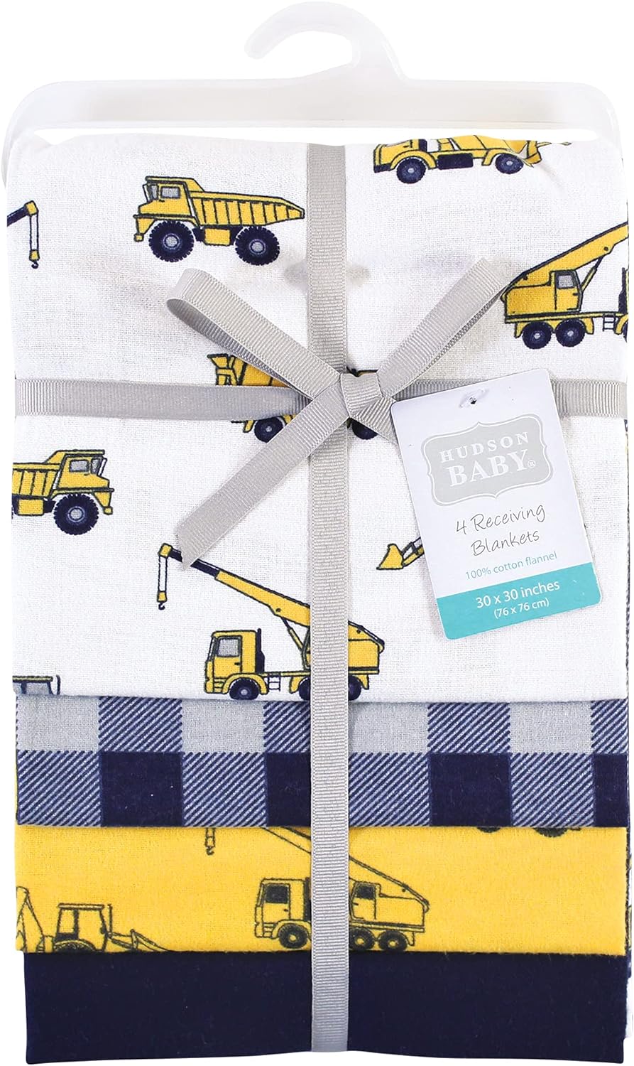 Hudson Baby Unisex Baby Cotton Flannel Receiving Blankets, Eucalyptus, One Size(Construction One Size)