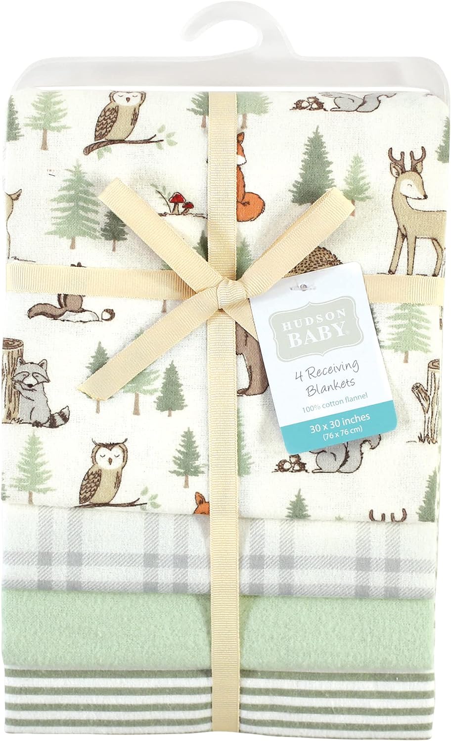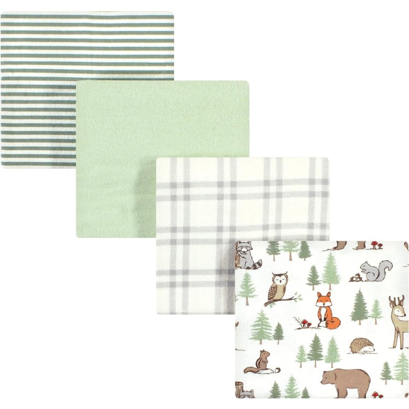 Hudson Baby Unisex Baby Cotton Flannel Receiving Blankets, Eucalyptus, One Size(Forest Animals One Size)