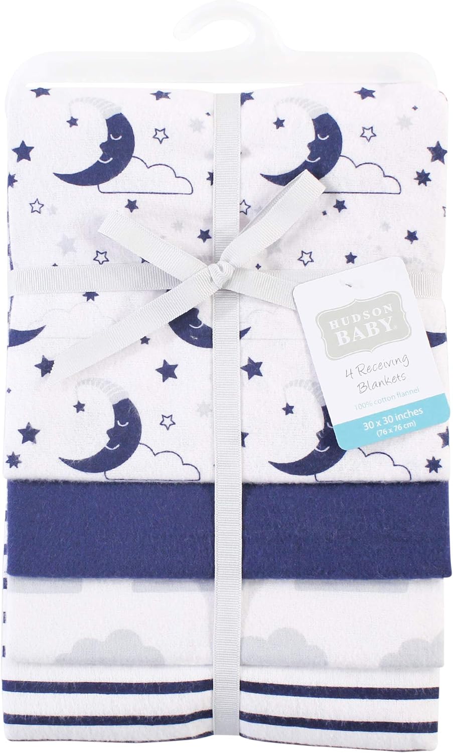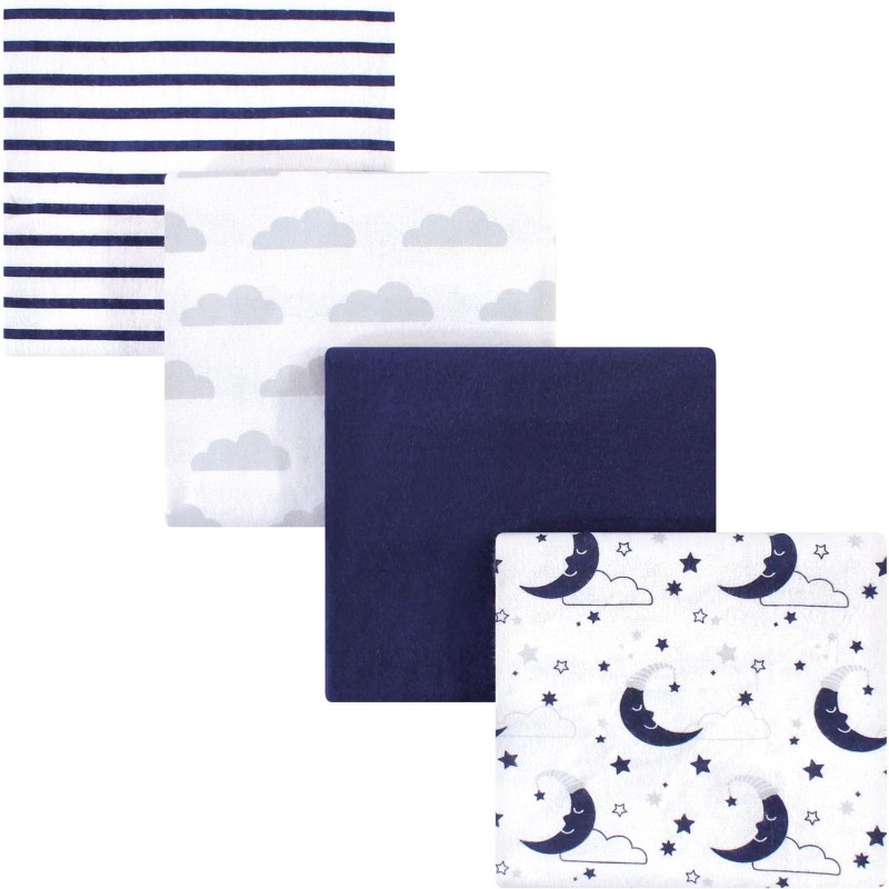 Hudson Baby Unisex Baby Cotton Flannel Receiving Blankets, Eucalyptus, One Size(Moon One Size)